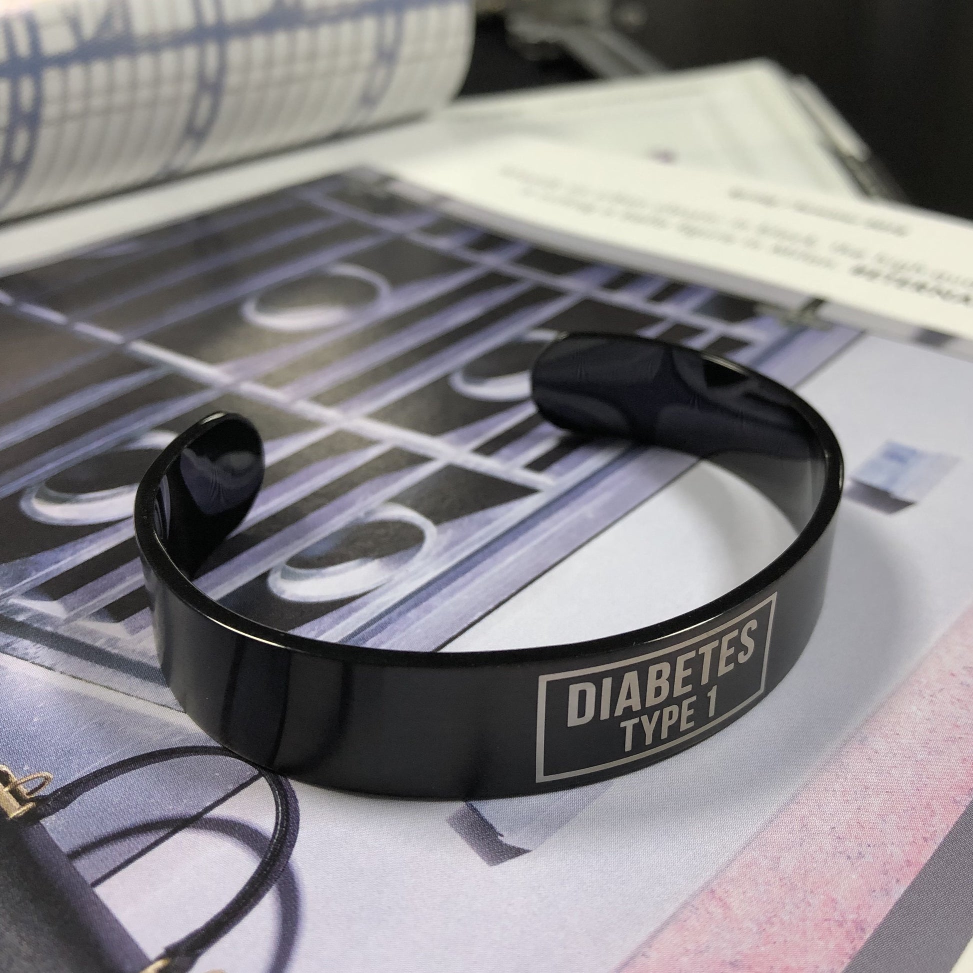 - Engraving medical condition "Allergic to Penicillin" in the middle of the outside of the cuff White character, art design, The perfect combination of beauty and function,