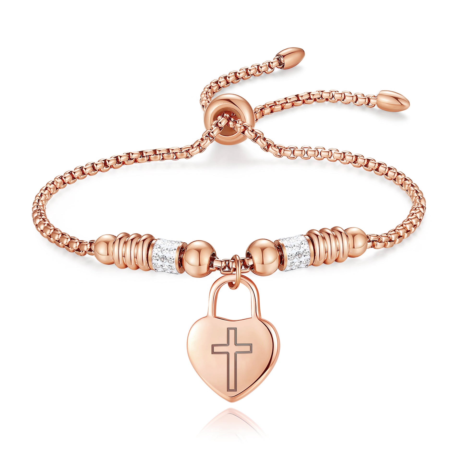 Exquisite Stainless Steel Heart Cross Bracelet - A Thoughtful Religious Gift for Women, Ideal for Christmas and New Year's Celebrations