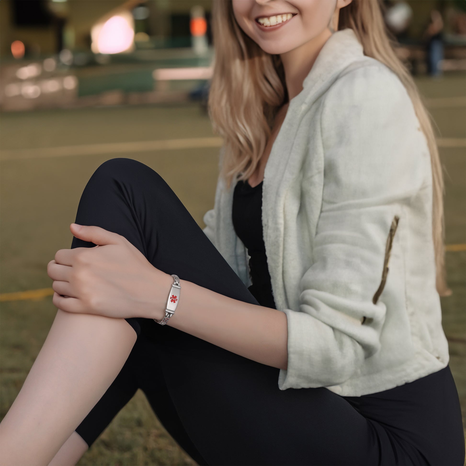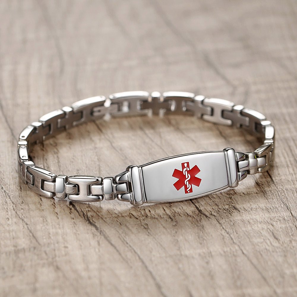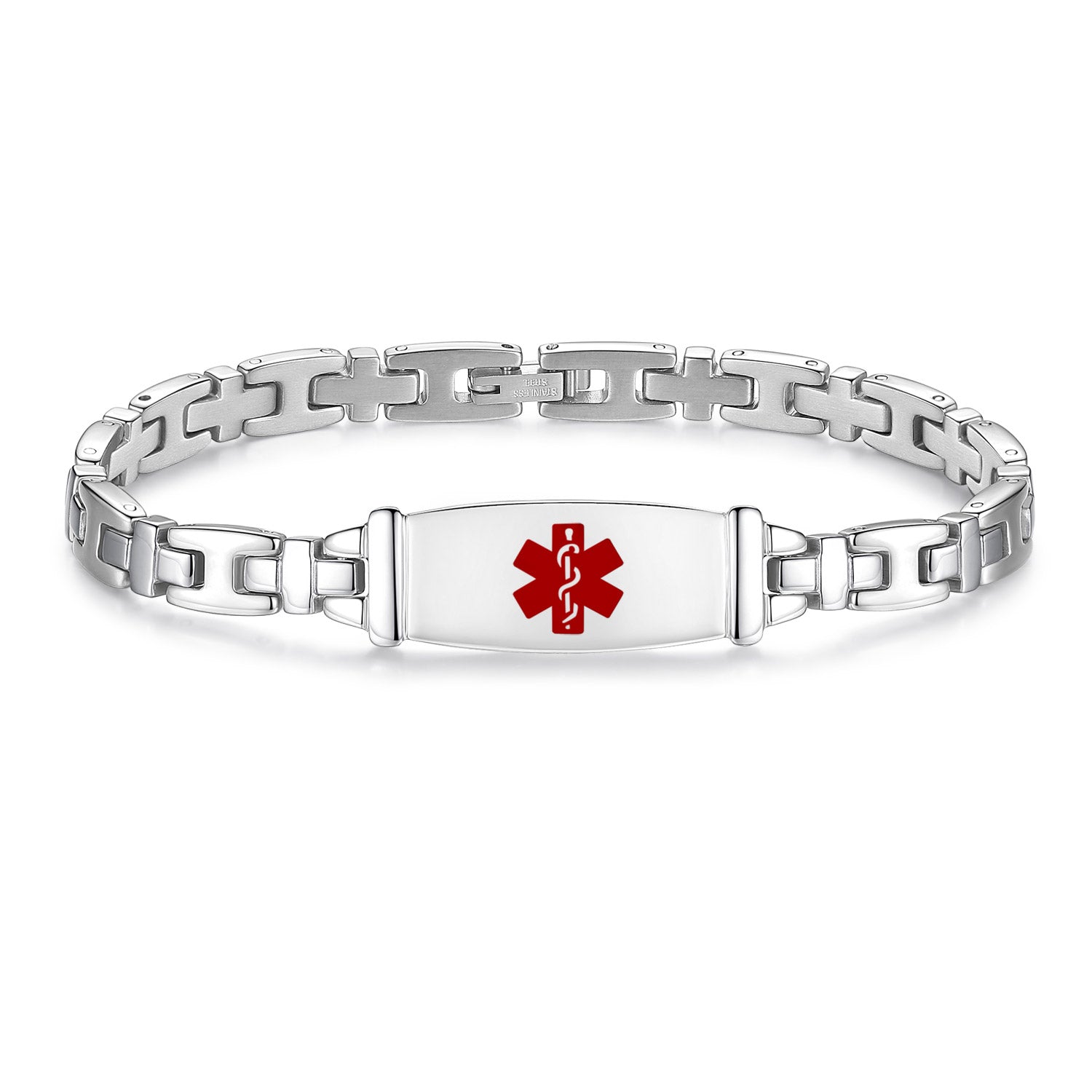 This medical alert bracelet is feminine and comfortable,8mm width slender link more cute and not bulky. the paramedics immediately recognized it as a Medic Alert Bracelet. Also a beautiful fashion jewelry!