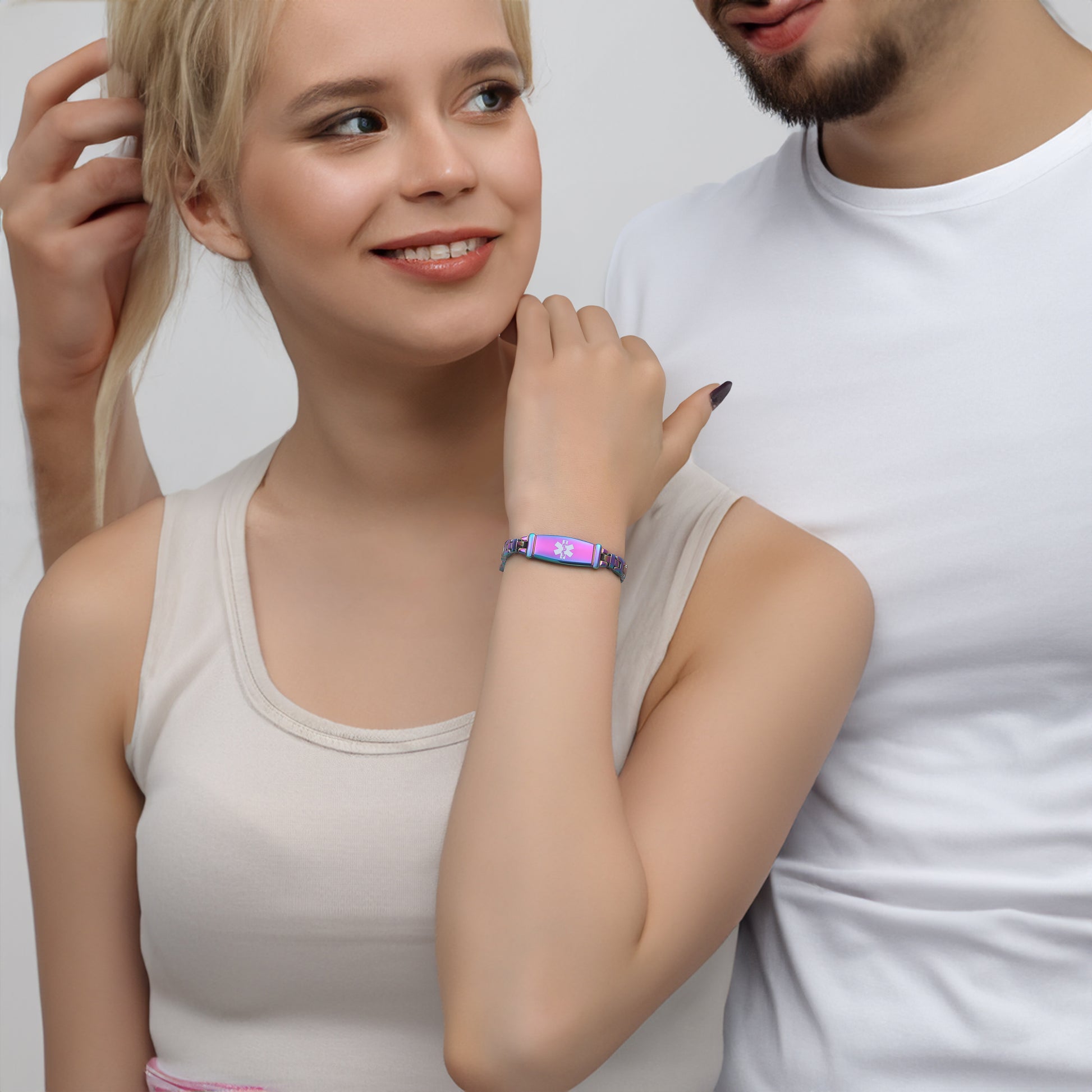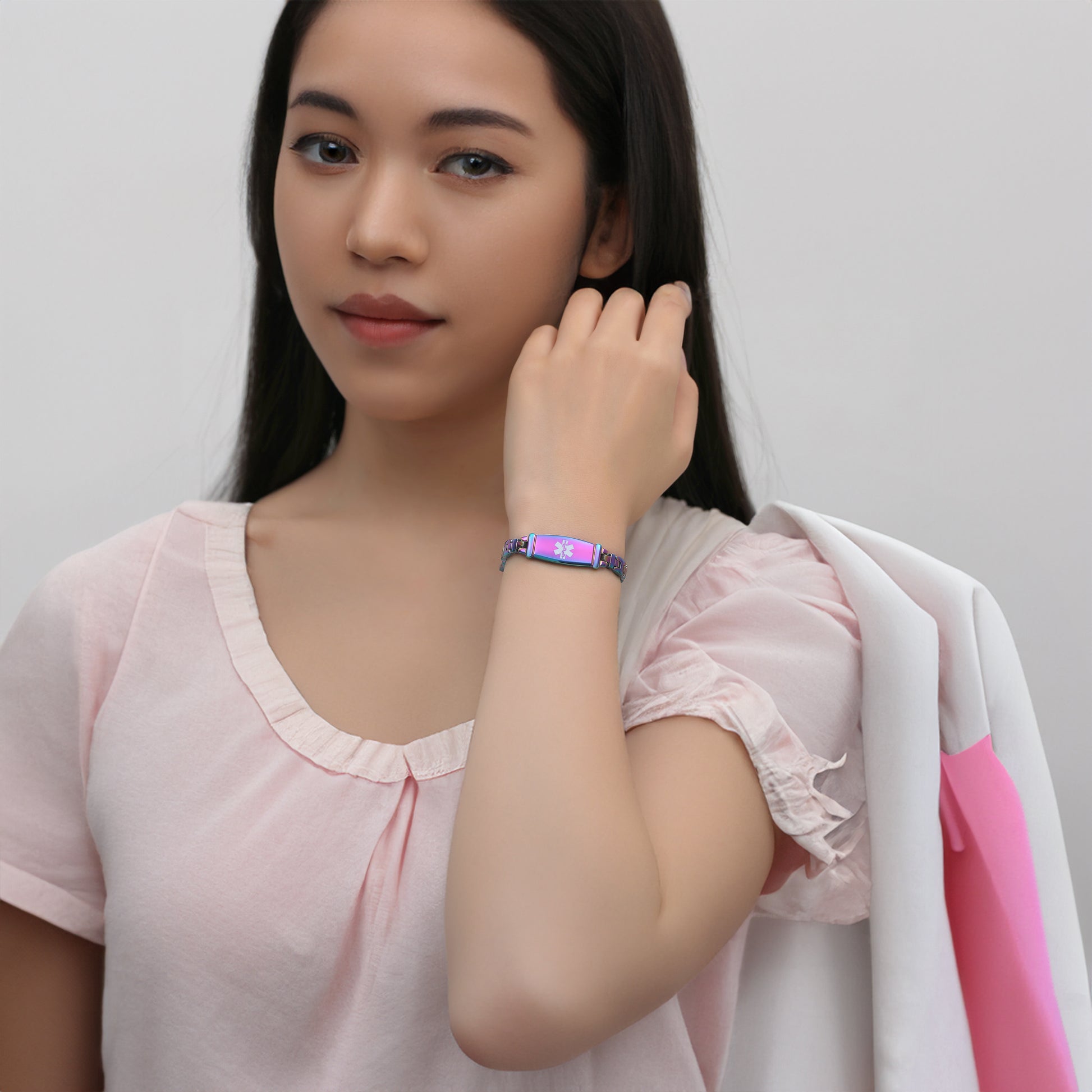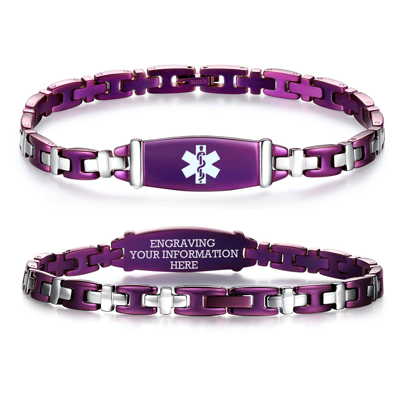 This great women's medical id bracelets with a Free Medical alert wallet card, Can let you record more medical conditions! and provide extra links provided along with the tool for adding or removing links, Beautiful gift box packaging, also a great gift!