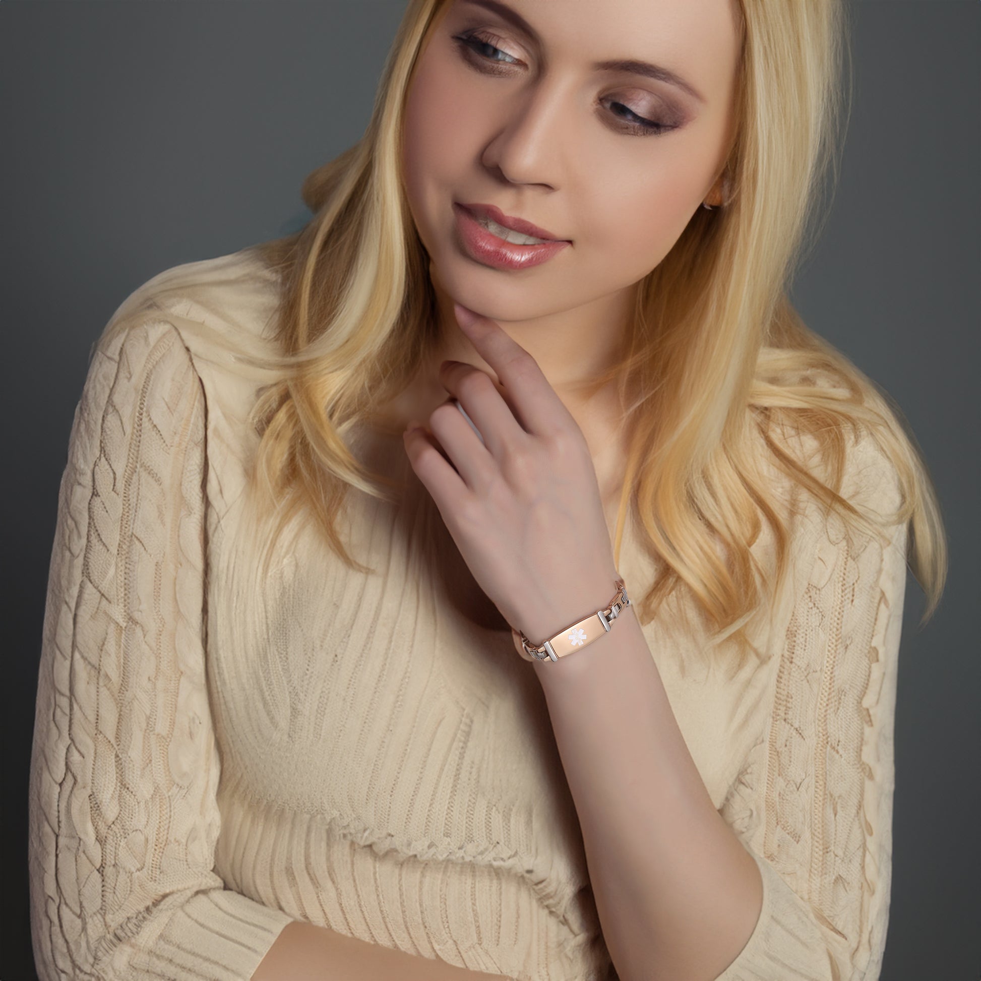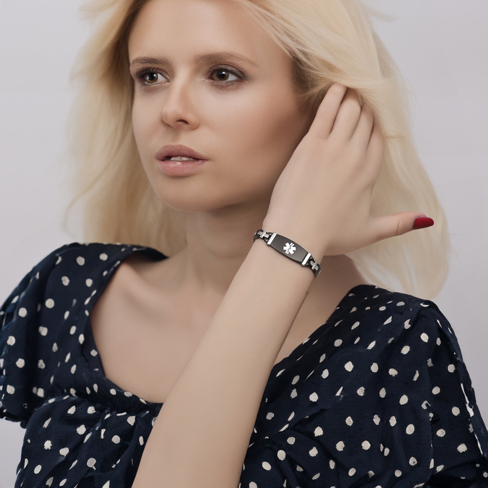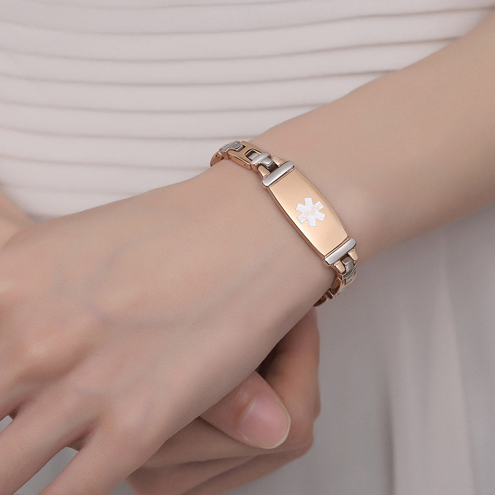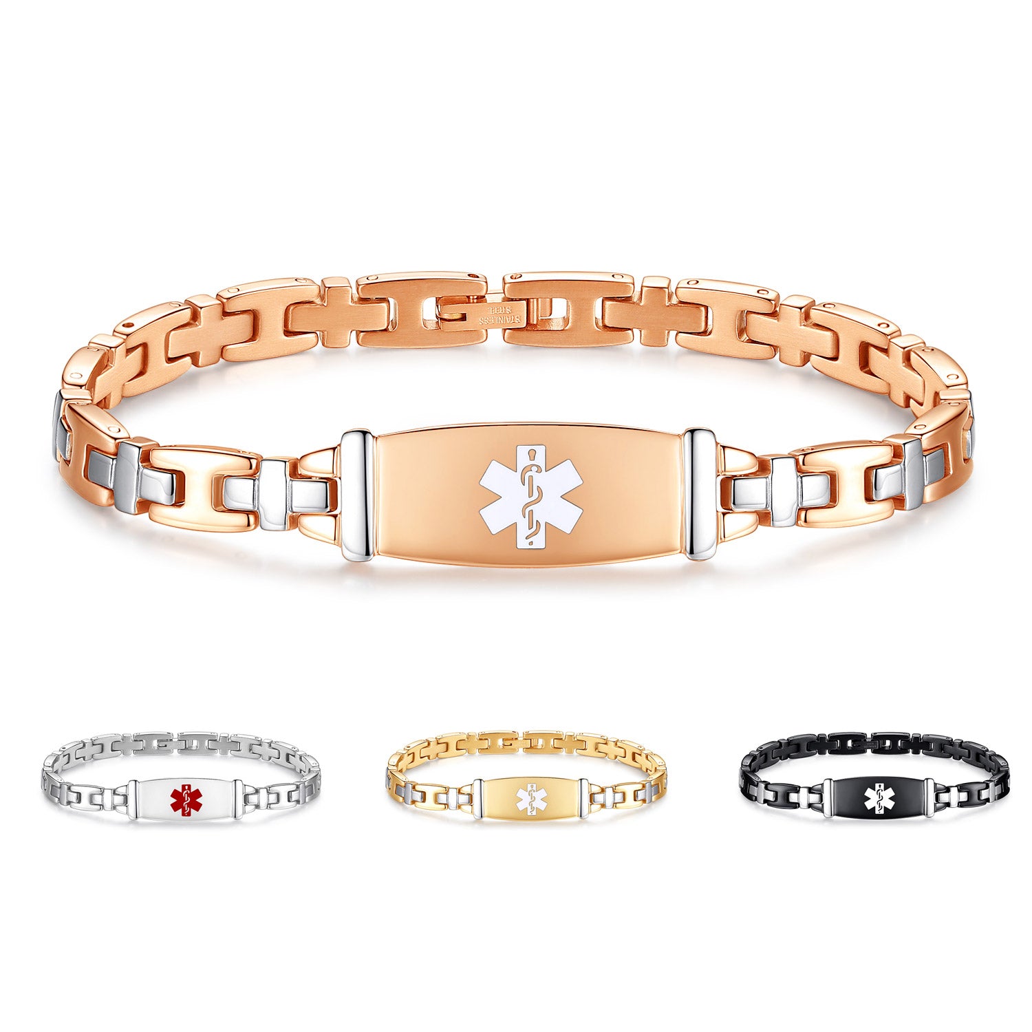 Classic aristocratic lady style medical alert id bracelets Made of non-allergic 316L stainless steel! This cute style medical bracelets makes your wrist more eye-catching! sturdy and attractive,waterproof,Enough for you to handle any occasion!