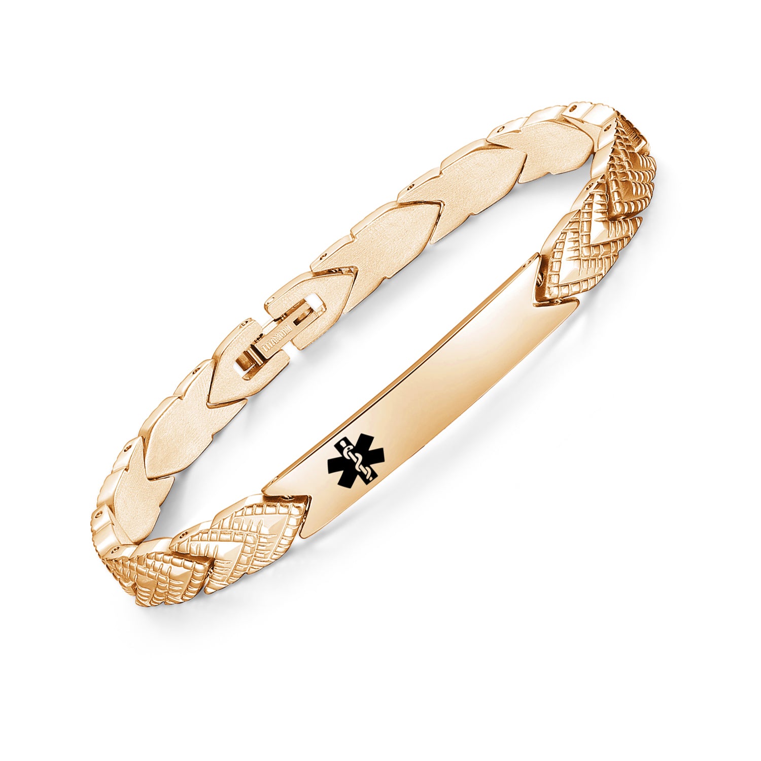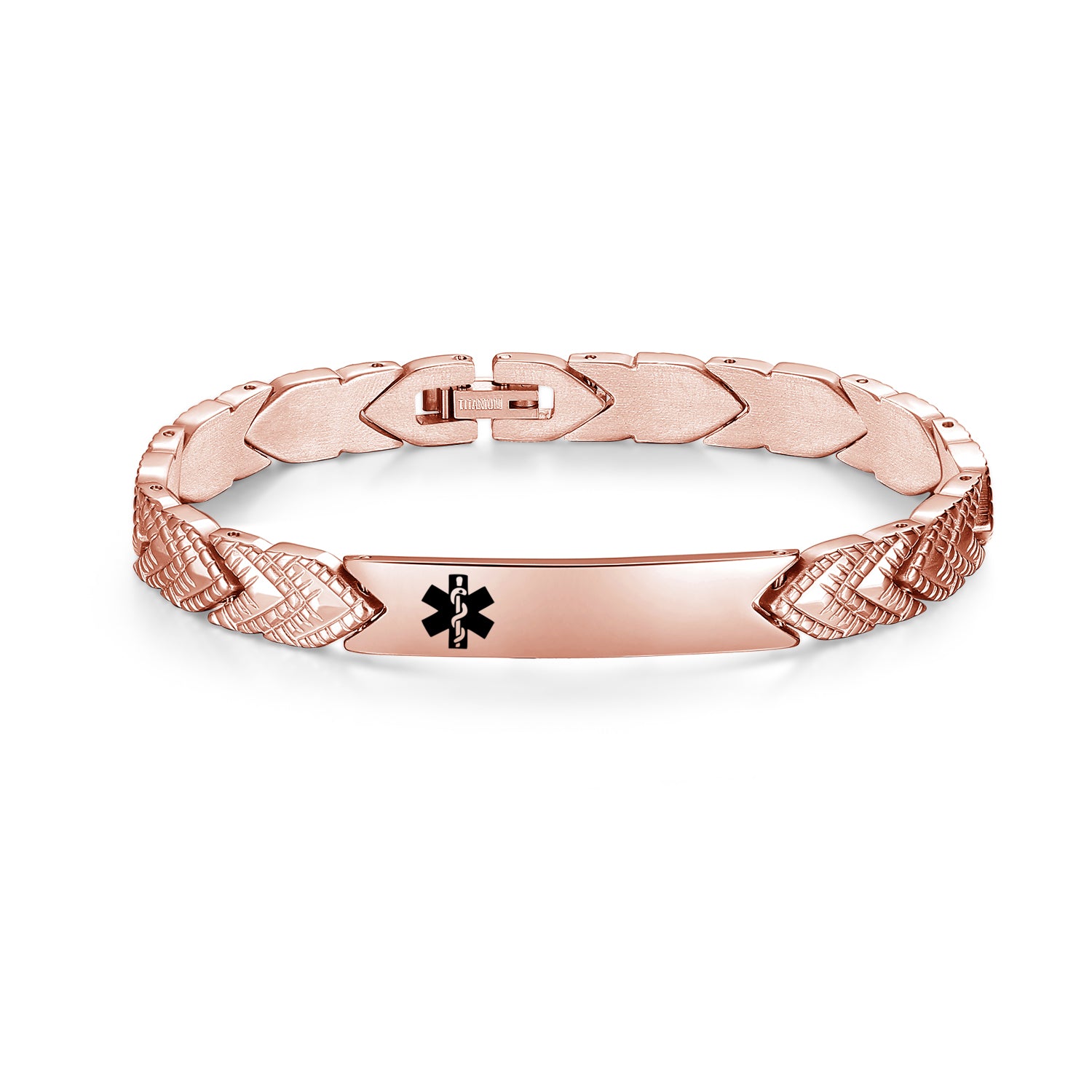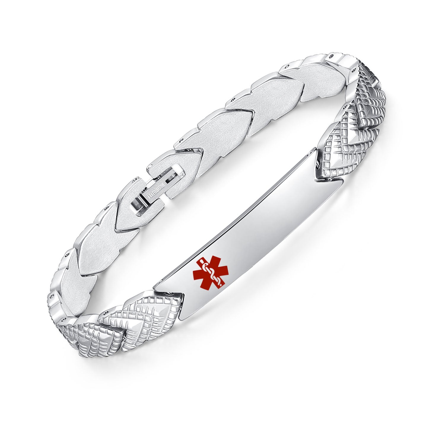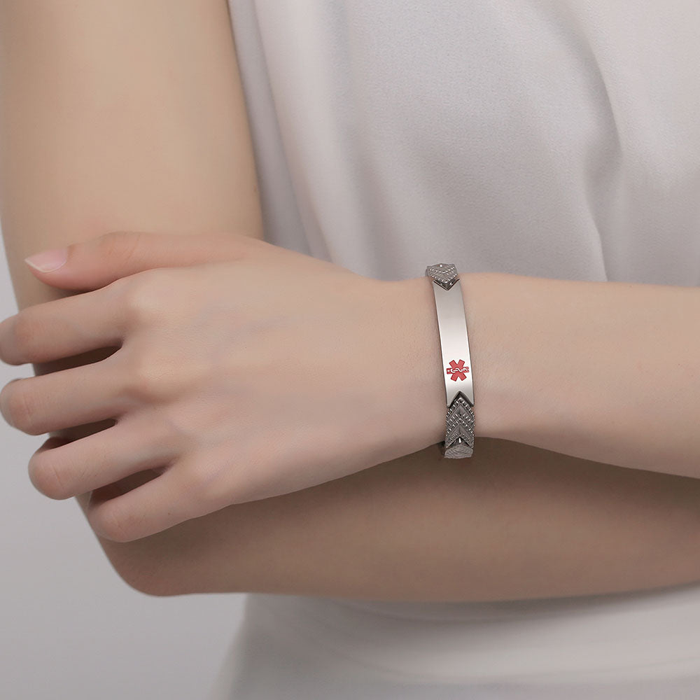 This beautiful embossed female medical id bracelet using titanium as raw material,,Not allergic, corrosion-resistant, lighter than stainless steel.The best medical id jewelry material