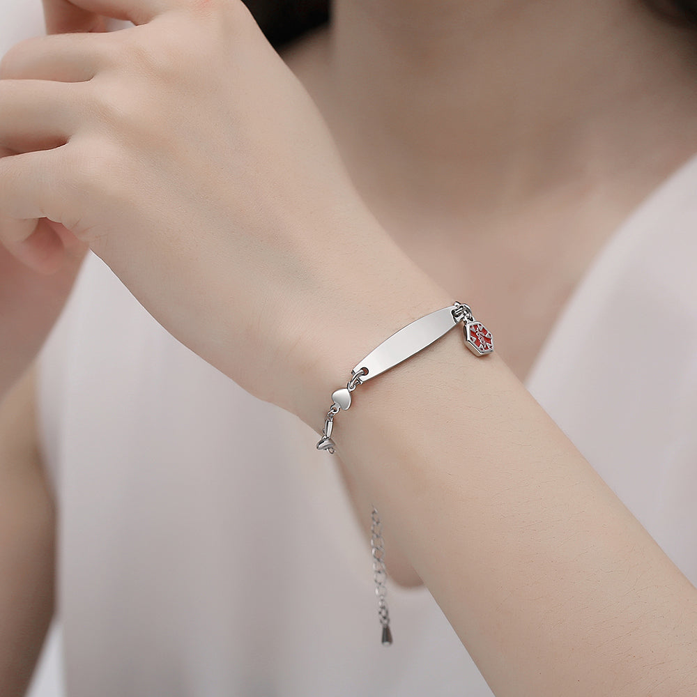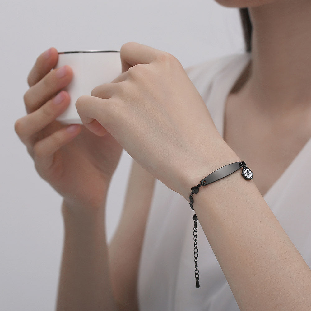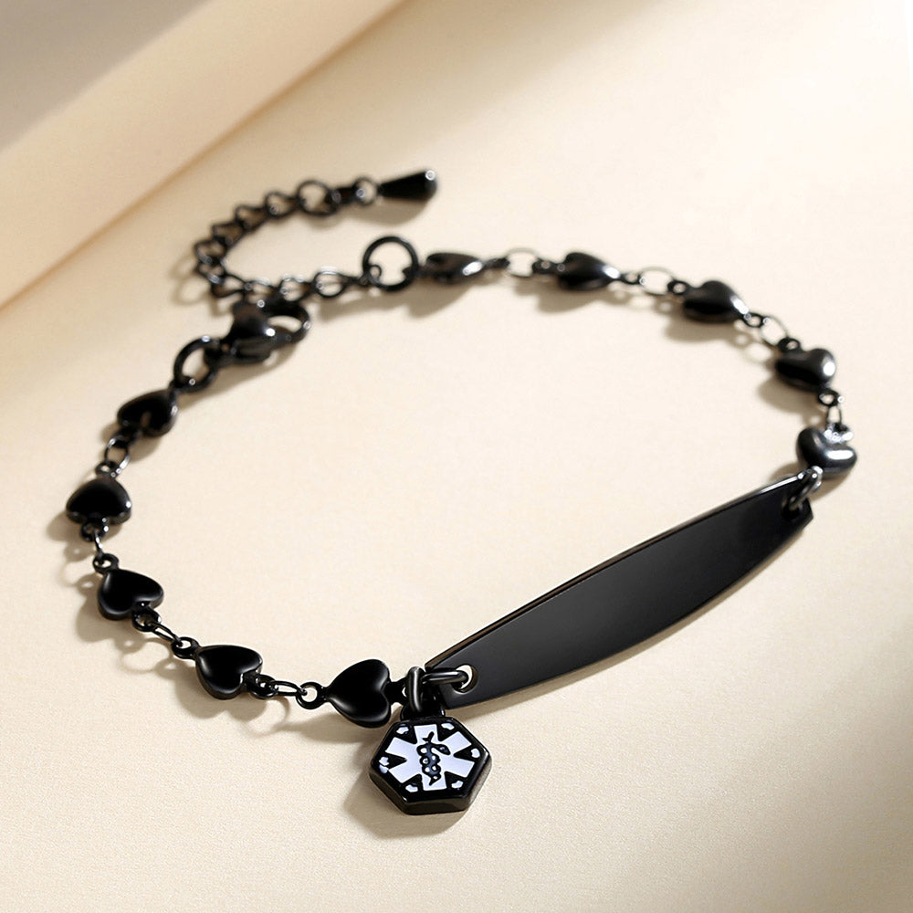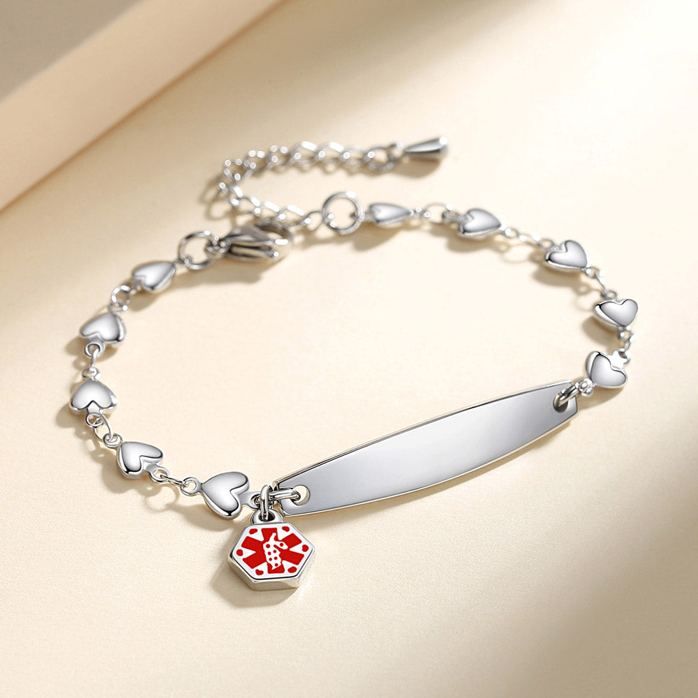 Fashion Medical Alert ID Bracelet for Women with heart chain and Free Engraving