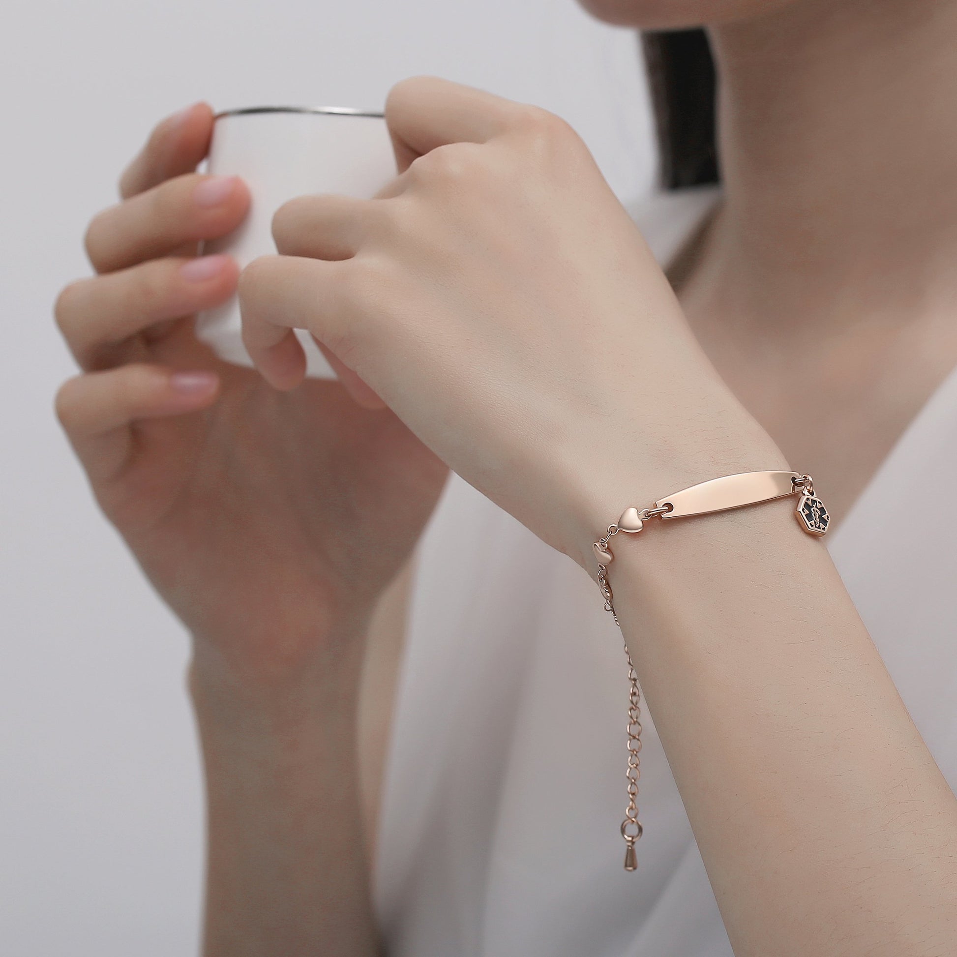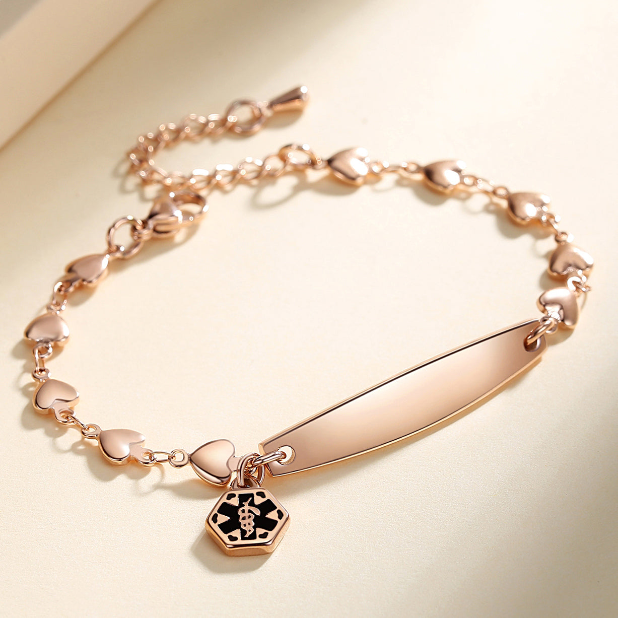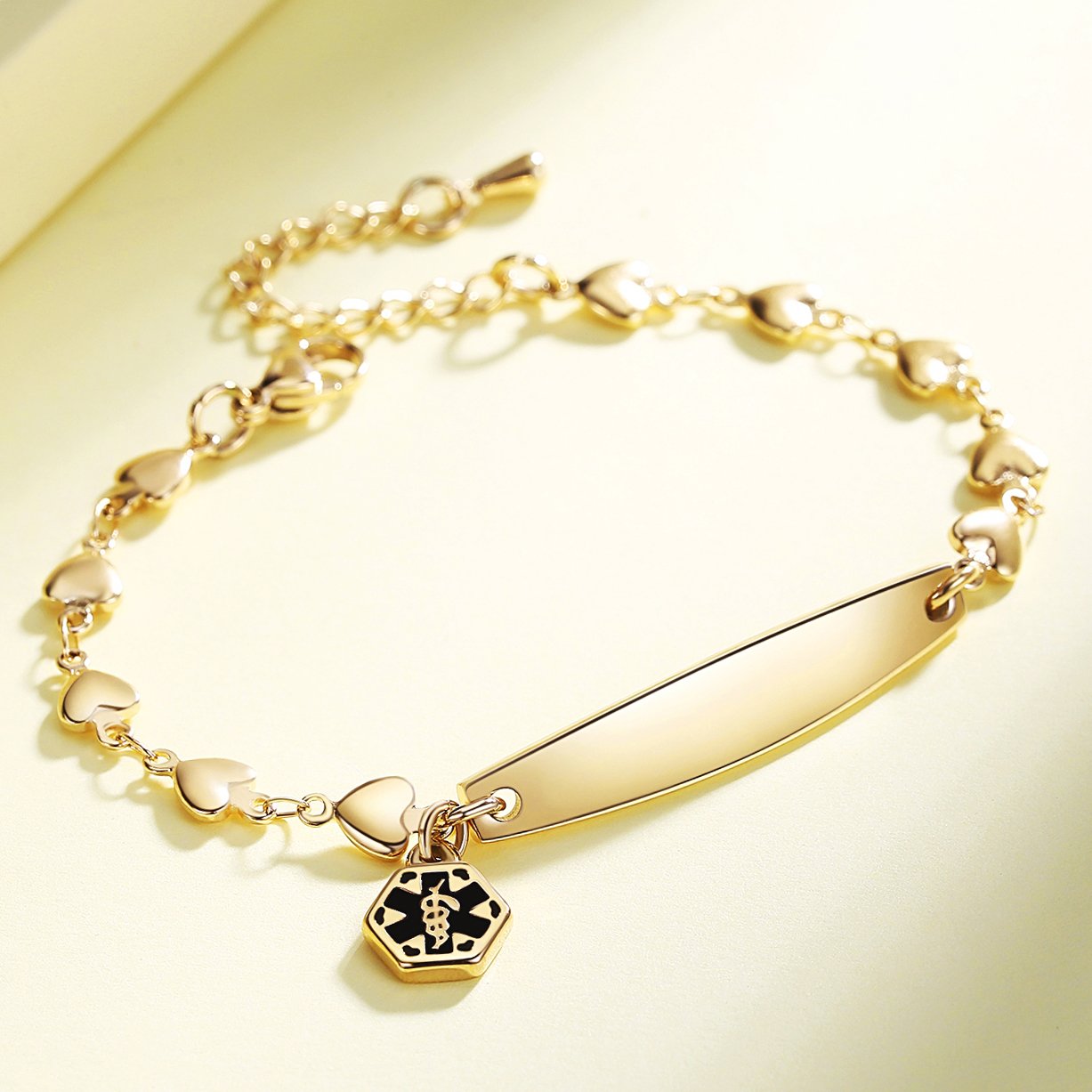 Fashion Medical Alert ID Bracelet for Women with heart chain and Free Engraving