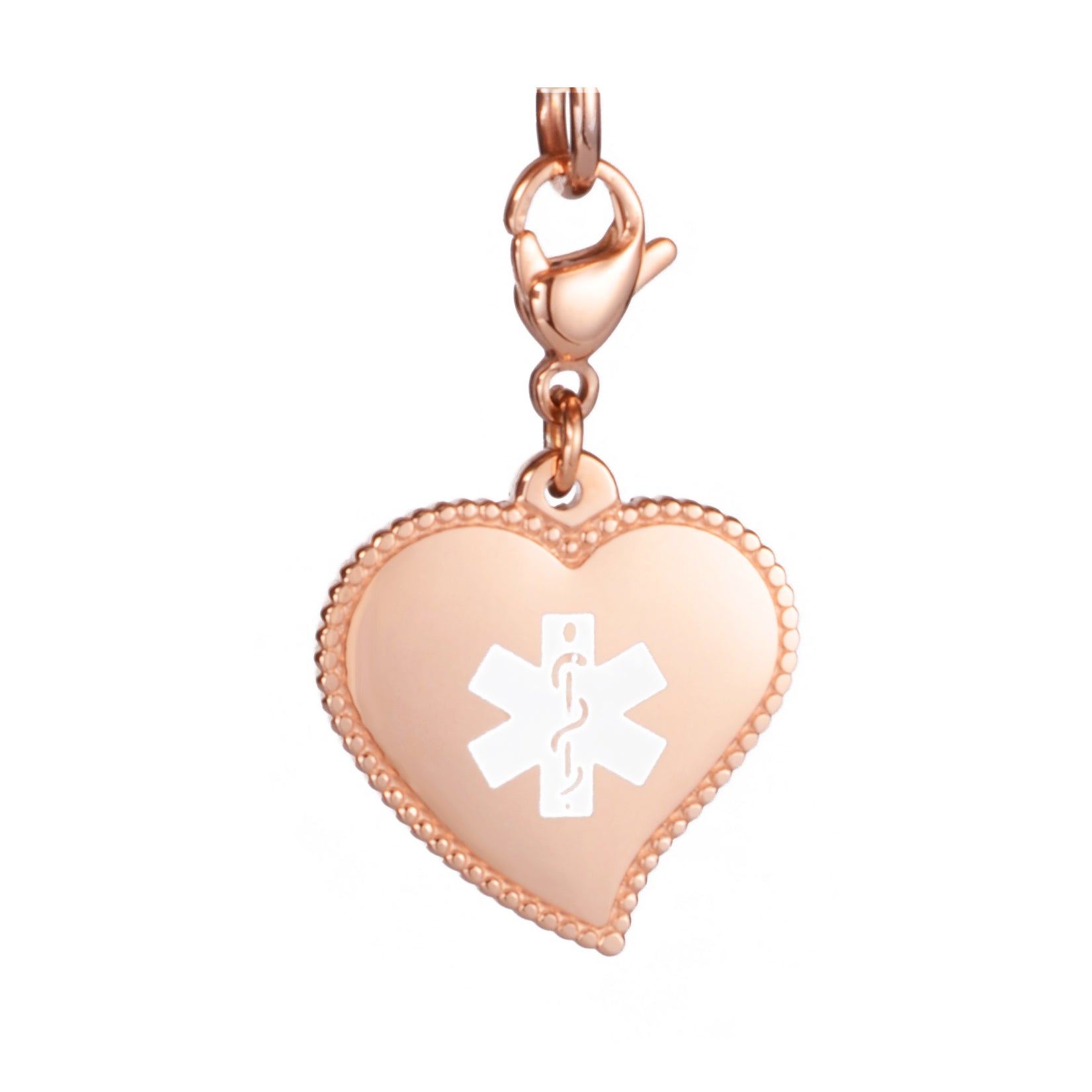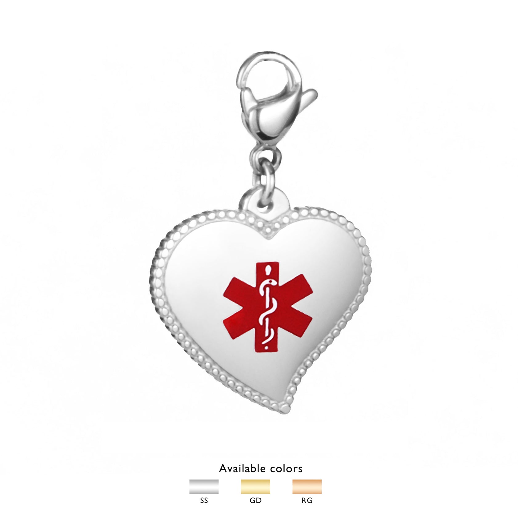 LinnaLove Heart-Shaped Medical Alert Charm with Lobster Clasp for Bracelets and Necklaces