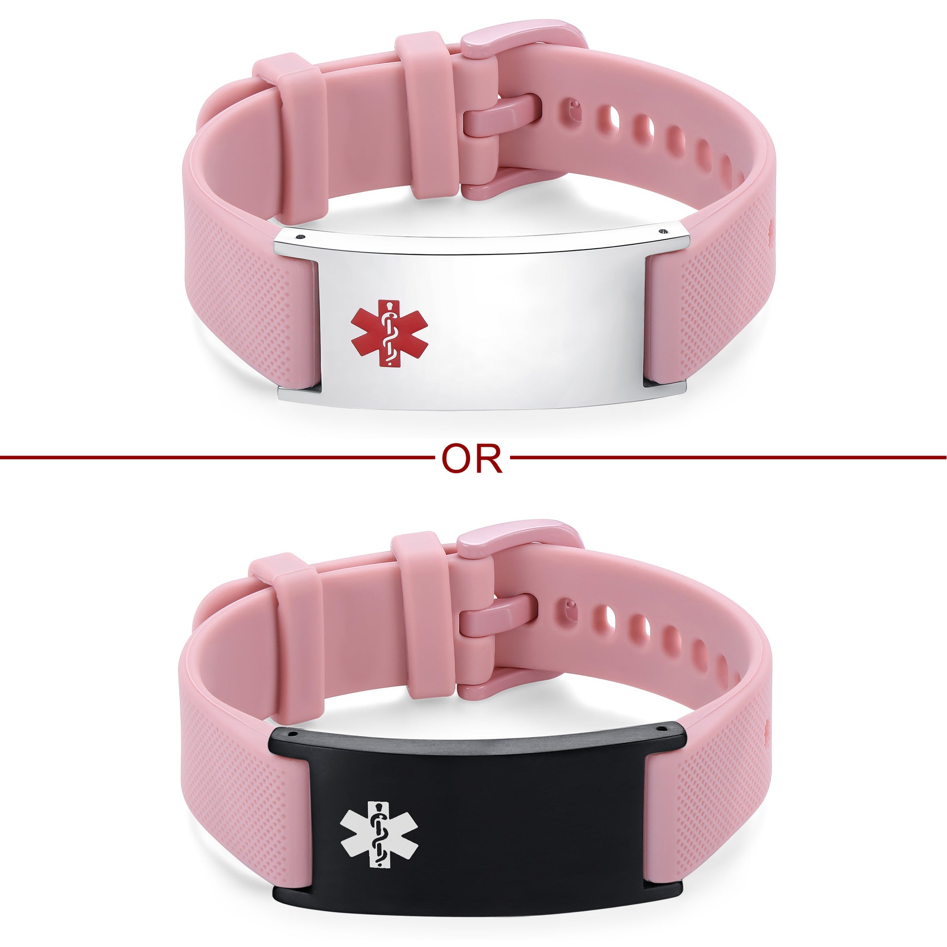 - ▶ This Sport Medical Alert ID Bracelets are made from hypoallergenic silicone and 316L Stainless steel,not allergic,waterproof ,comfortable fit