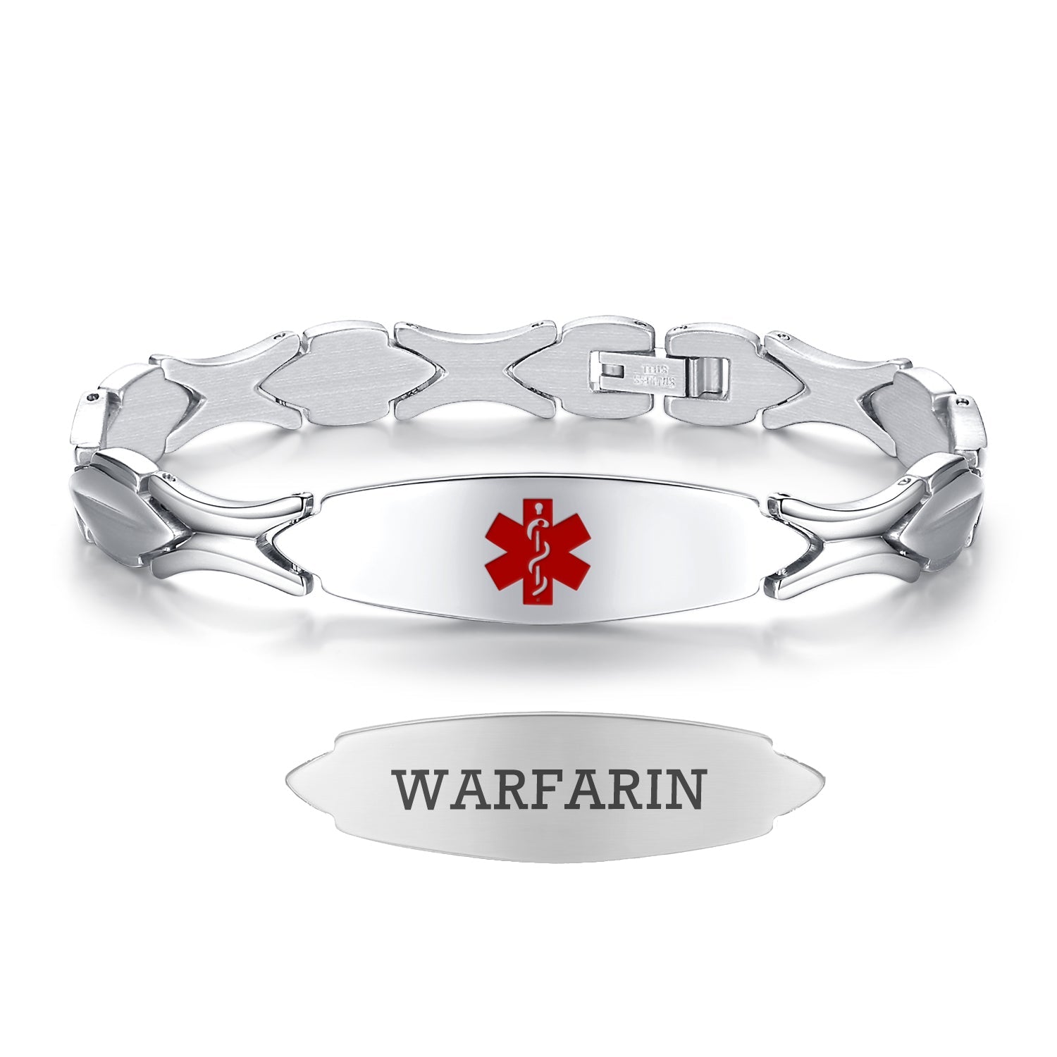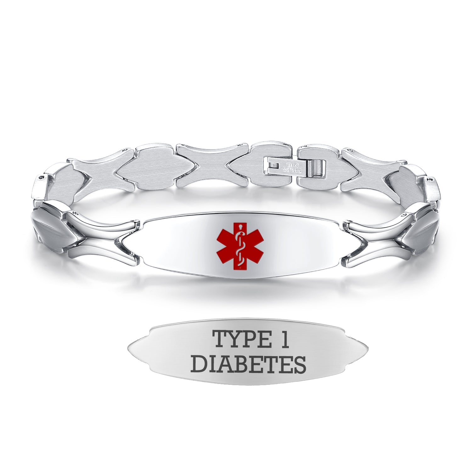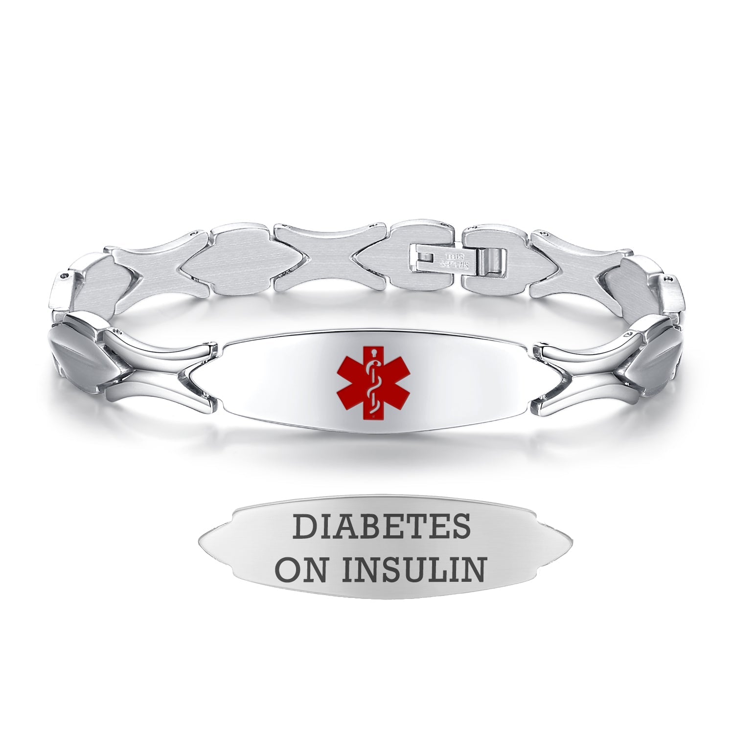 - ADJUSTABLE:This women's medical alert bracelets is factory set length = 7.5 inch, suitable for most women's wrists, each bracelet packs includes extra links, pins, plus easy-to-follow instructions and tools. Also easy to remove or add a few links to resize