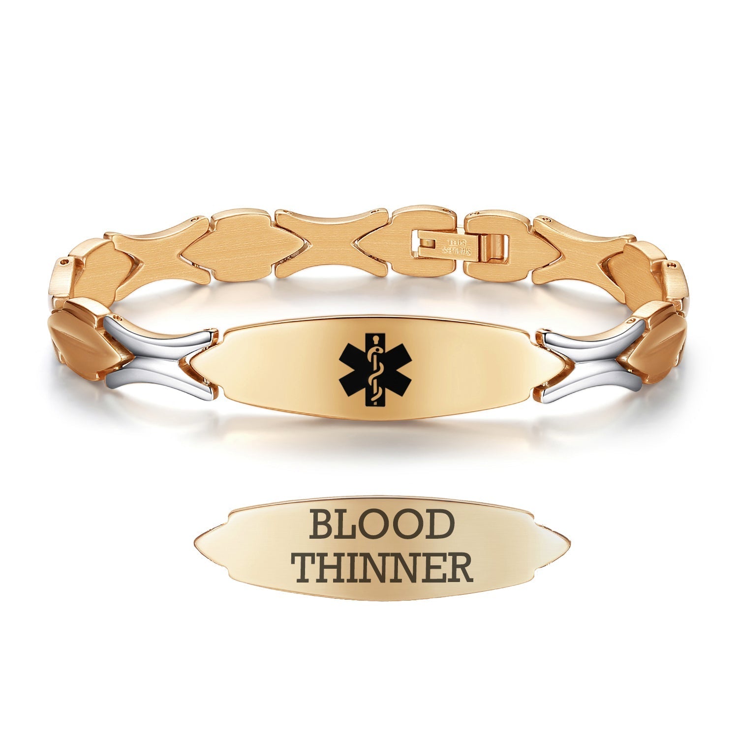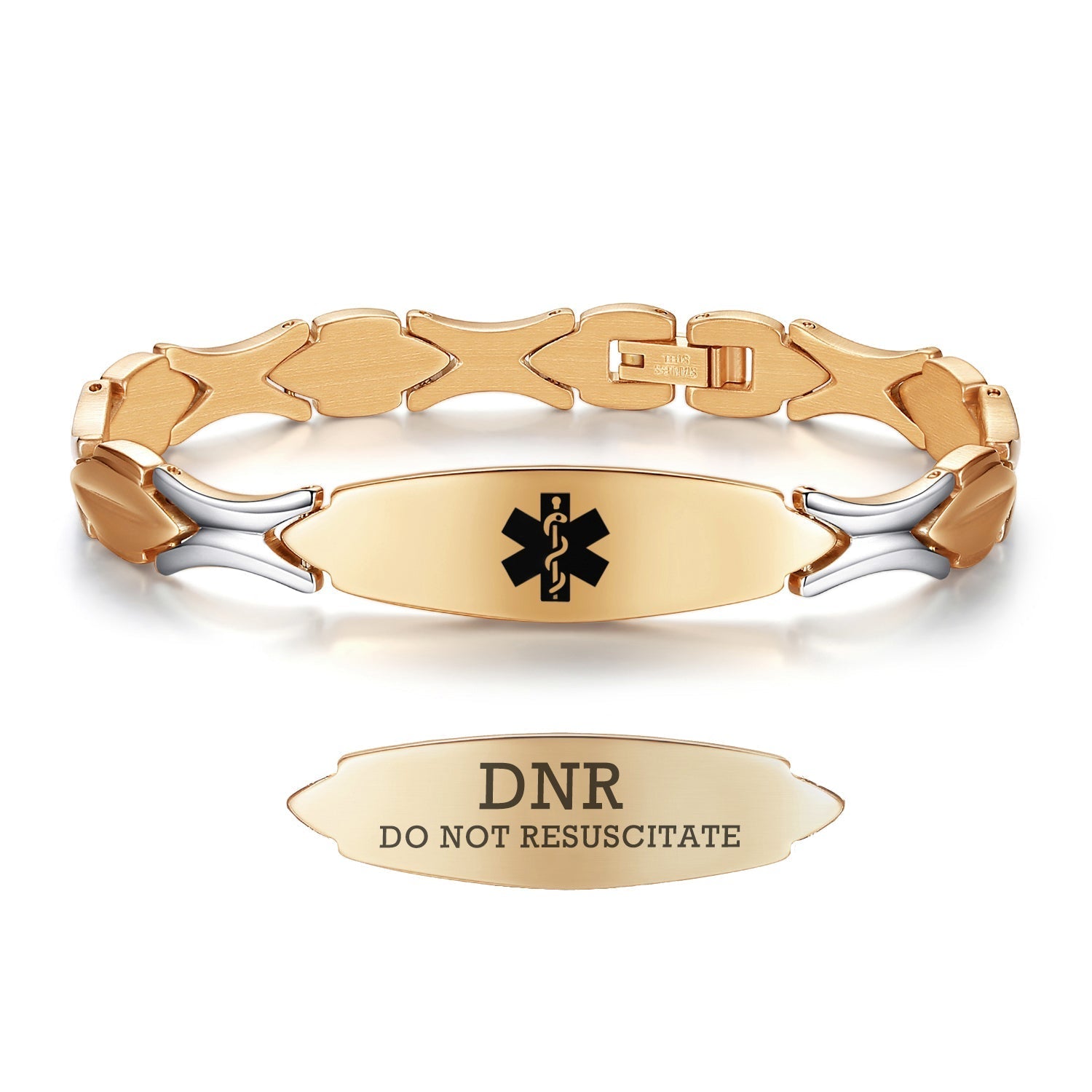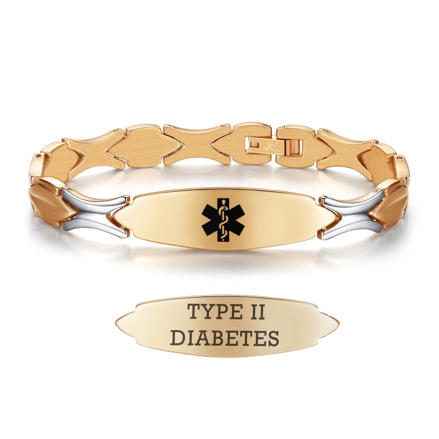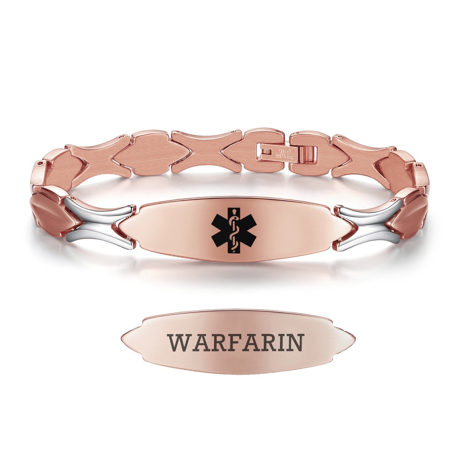 - RELIABLE MATERIAL:Made of high quality 316L stainless steel, with rose gold plating,shiny,non-allergic and waterproof. Dedicated to all the women who love life with this beautiful, well-crafted and lovely medical ID bracelet