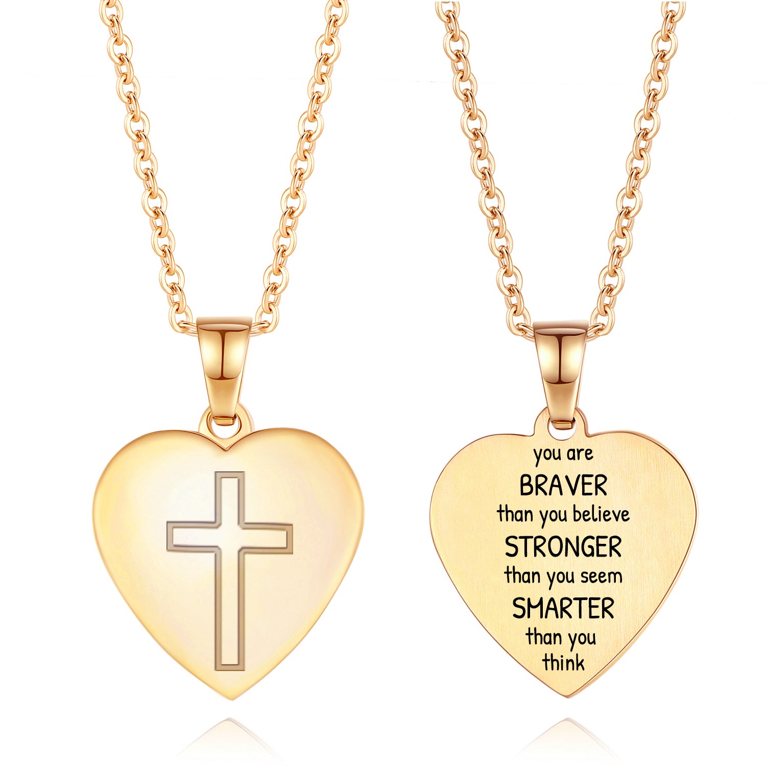 Heart Cross Pendant Necklace Engraved Bible Verses - Great Christian Gift for Women at Christmas, New Year, Birthdays and Baptisms