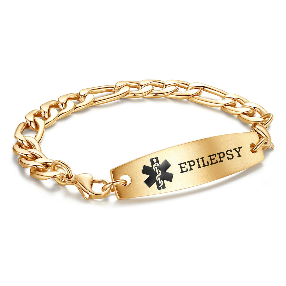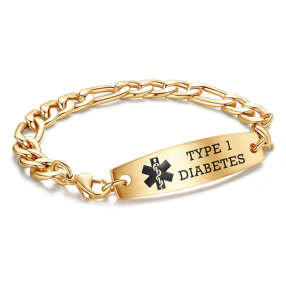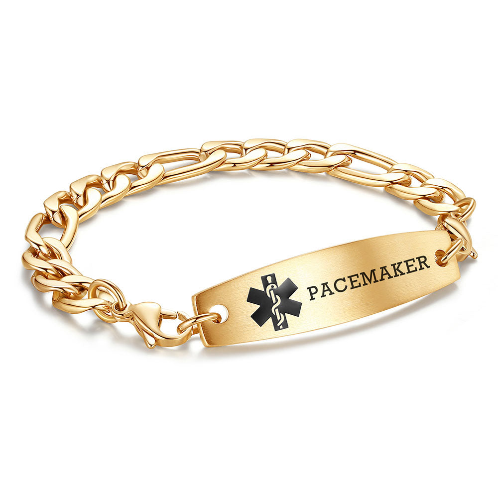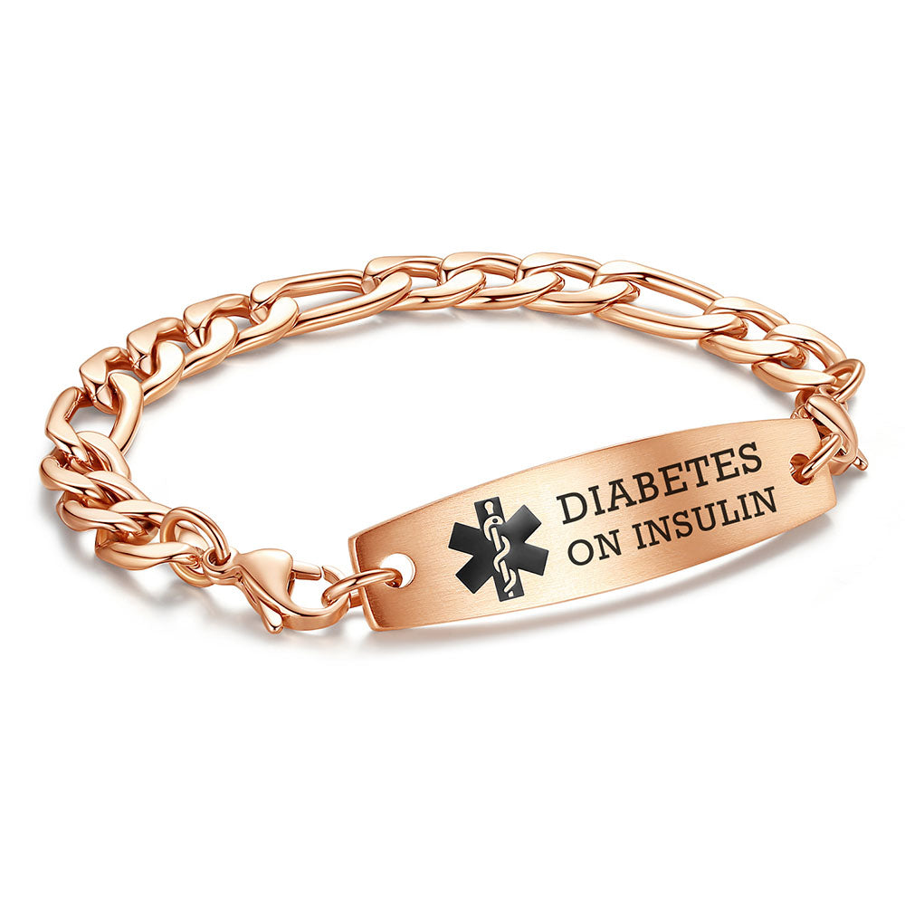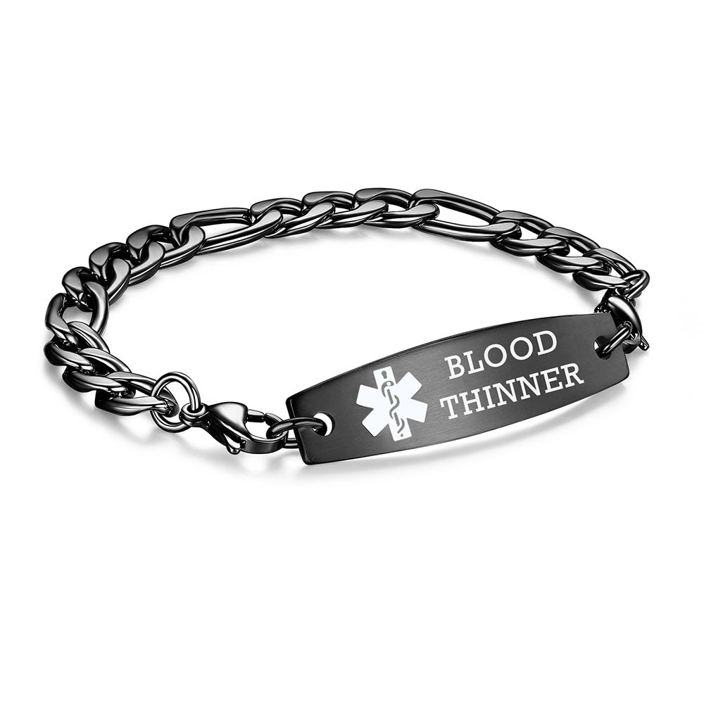 - This interchangeable medical id bracelet Material: stainless steel, 9/32 inch width Figaro chain+ classic medical id tags, Means you can replace the bracelet or tag separately,Surgical grade stainless steel, lead-free and nickel-free, waterproof and durable