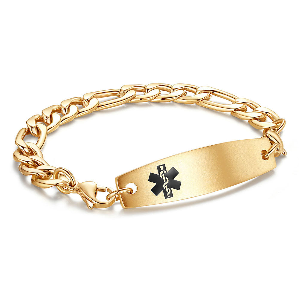 Figaro Chain Interchangeable Medical id Bracelets with Pre-Engraving medical conditions