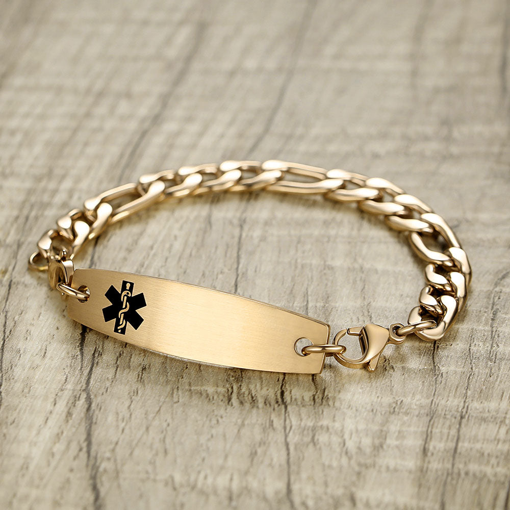 Figaro Chain Interchangeable Medical id Bracelets with Pre-Engraving medical conditions