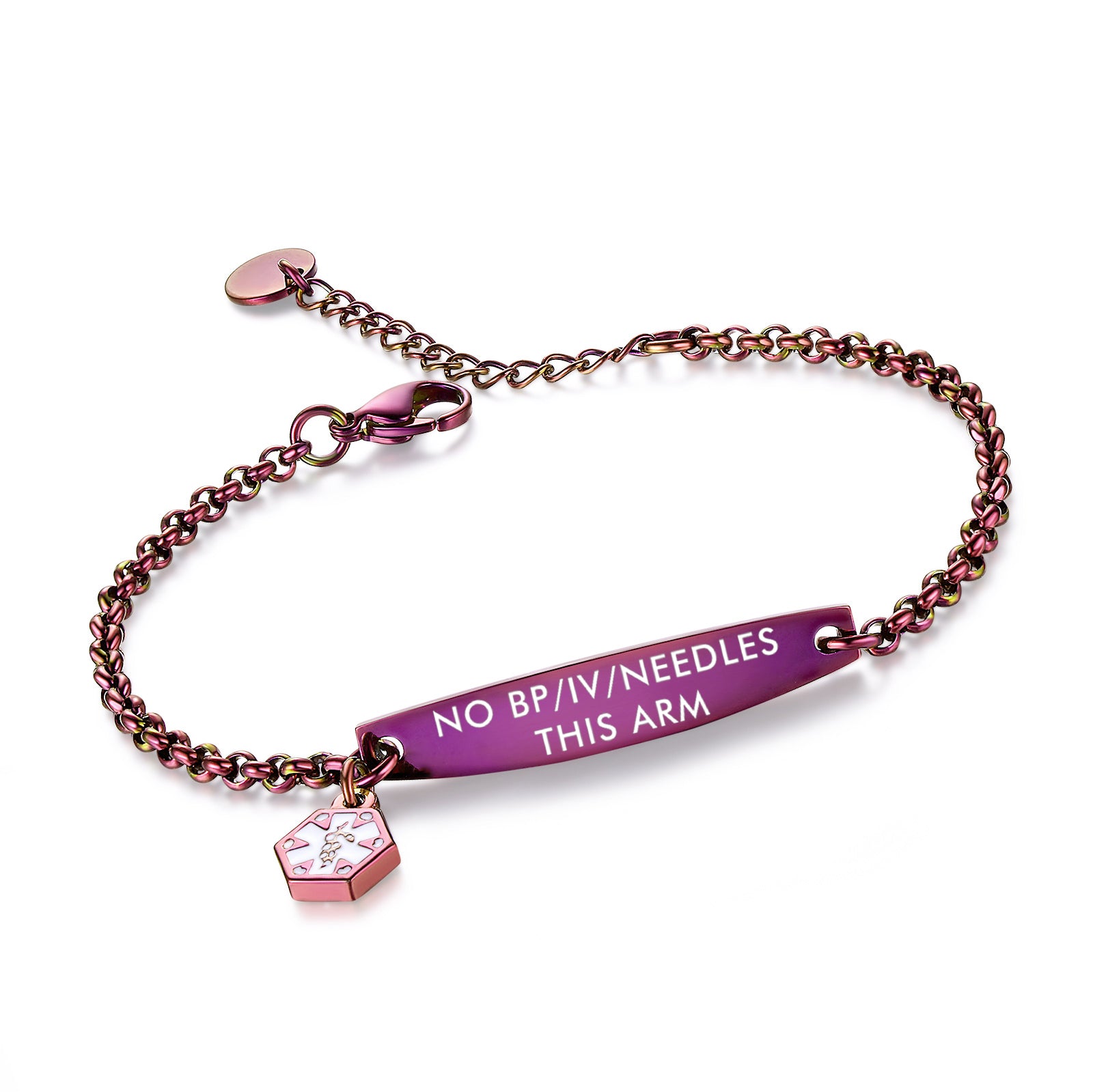 LinnaLove Fashion Shiny medical alert bracelet with Free Engraving Stainless steel Medical id bracelet for Women