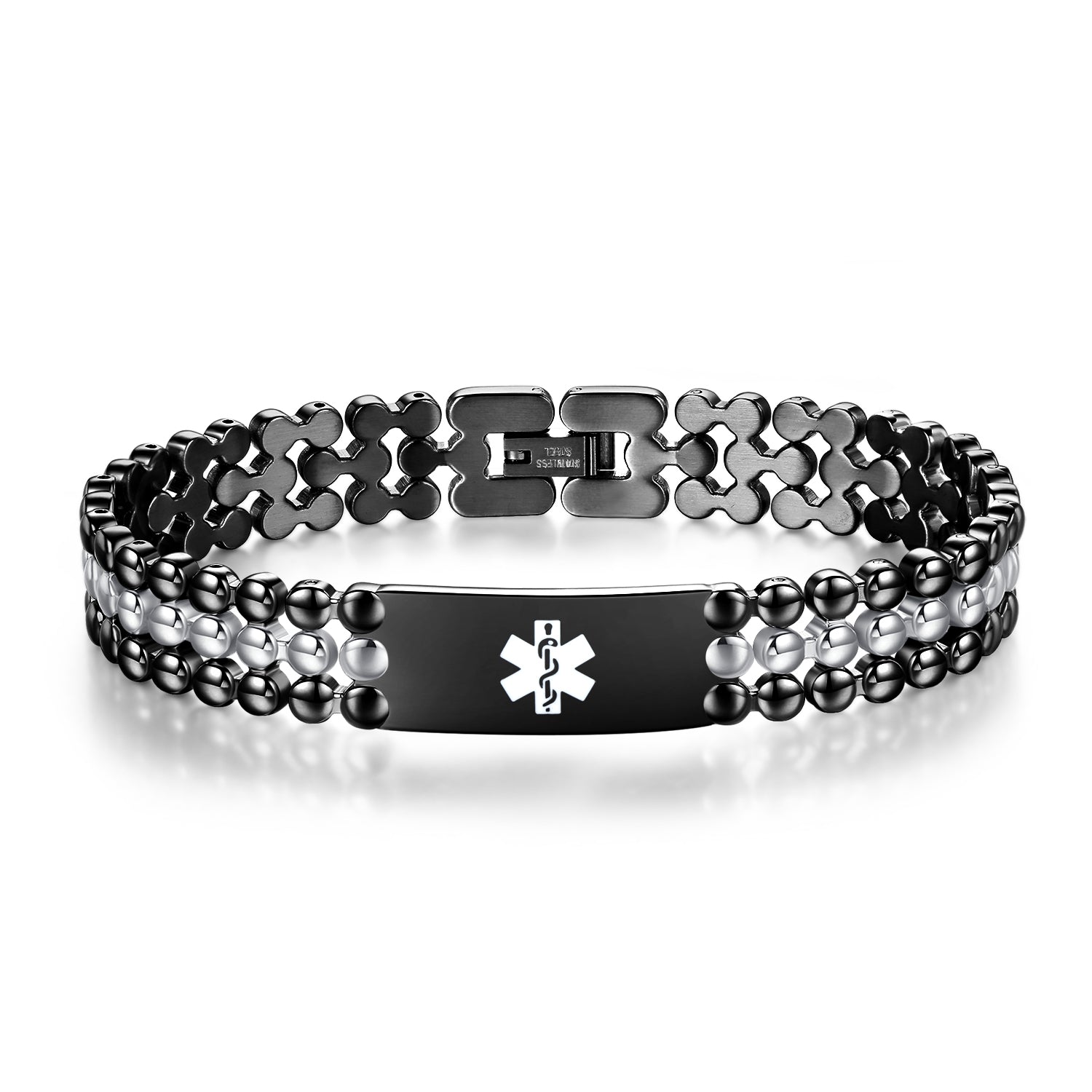 • 👍A red enamel medical alert symbol on the front of the medical id plate in the center, so that first responders can quickly identify the medical alert function of the bracelet,The back can be customized to engrave personalized medical conditions, up to 4 lines, it is recommended to engrave the name, medical conditions, medication conditions and emergency contacts and telephone numbers