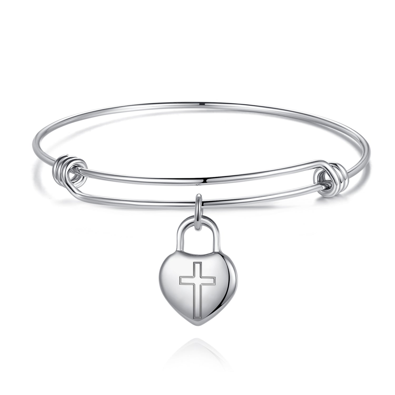 Exquisite Stainless Steel Heart Cross Bracelet - A Thoughtful Religious Gift for Women, Ideal for Christmas and New Year's Celebrations