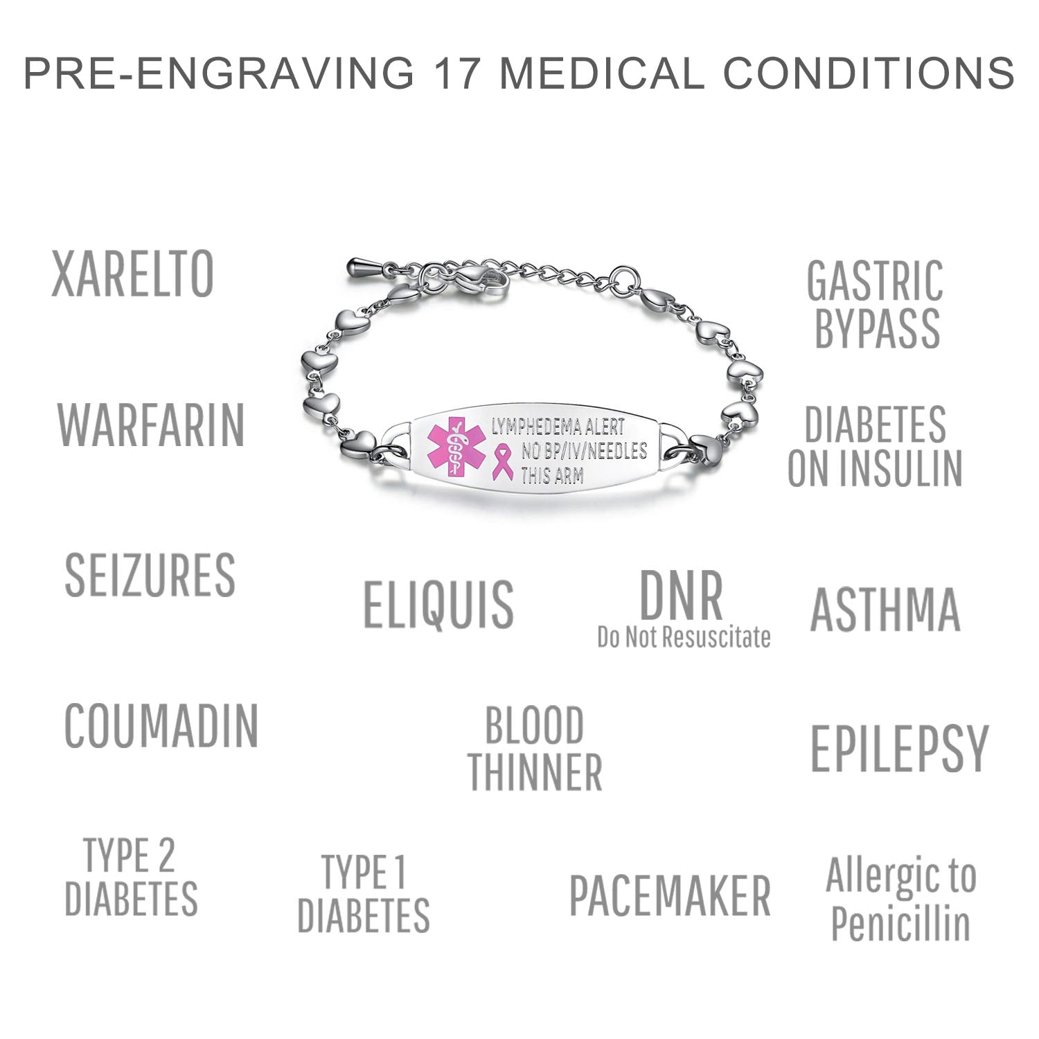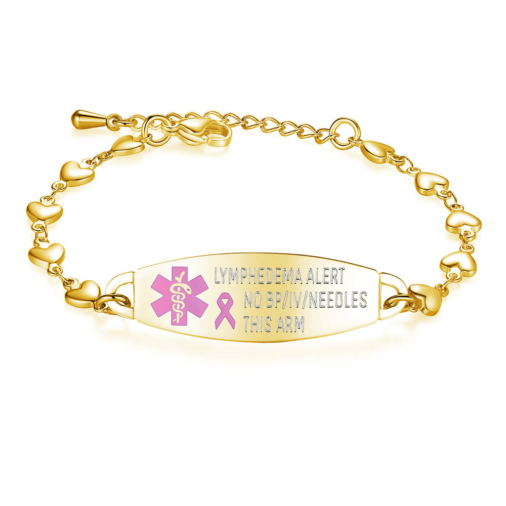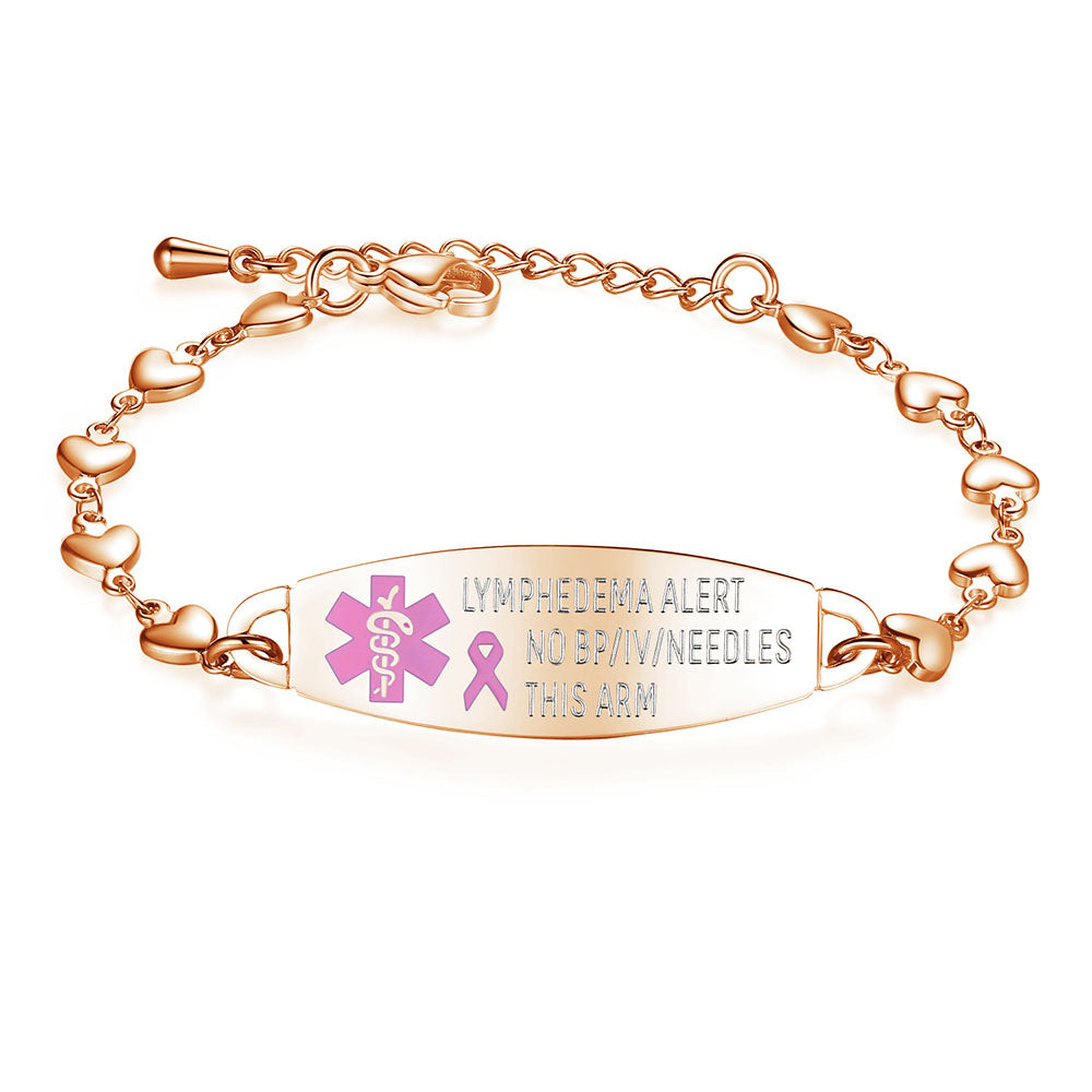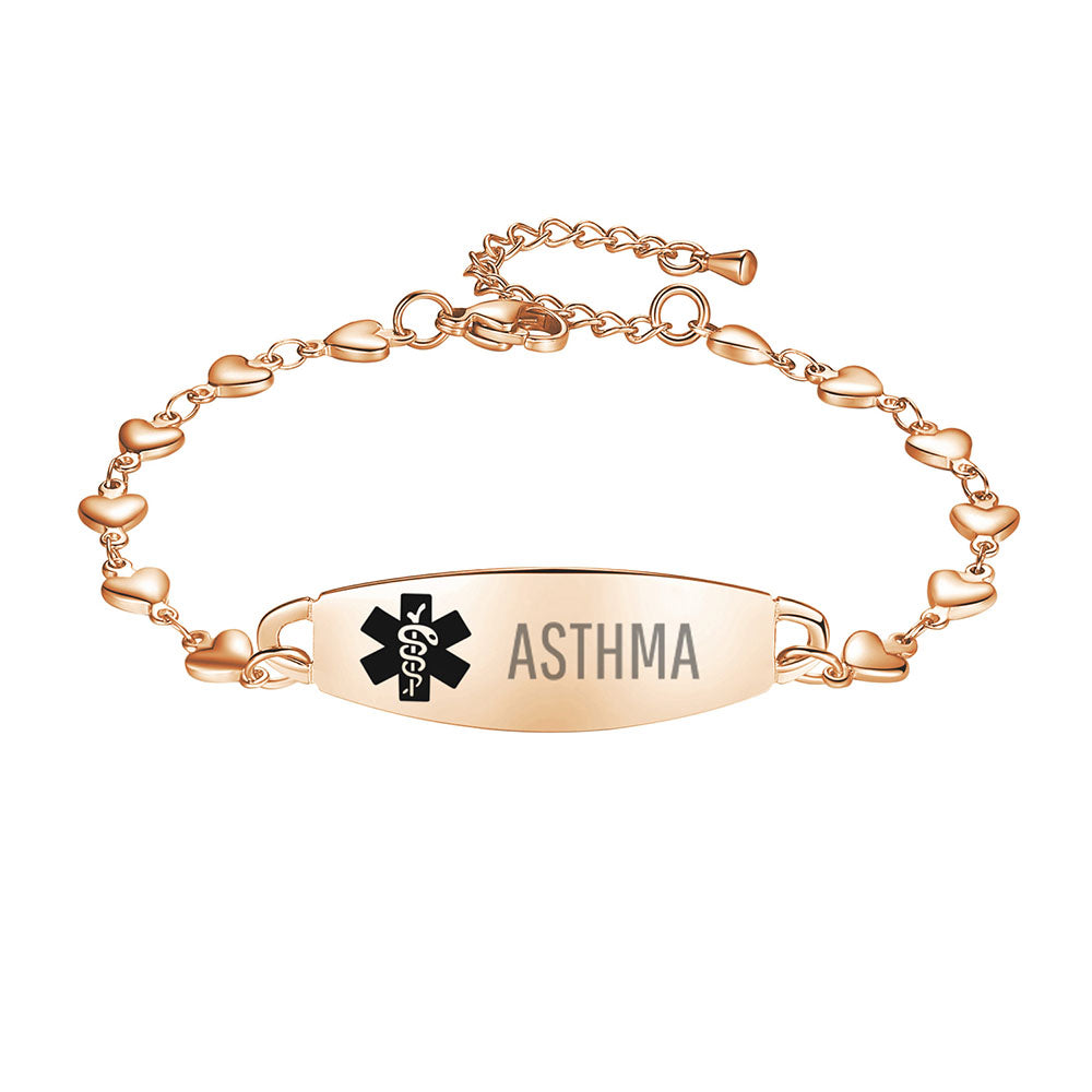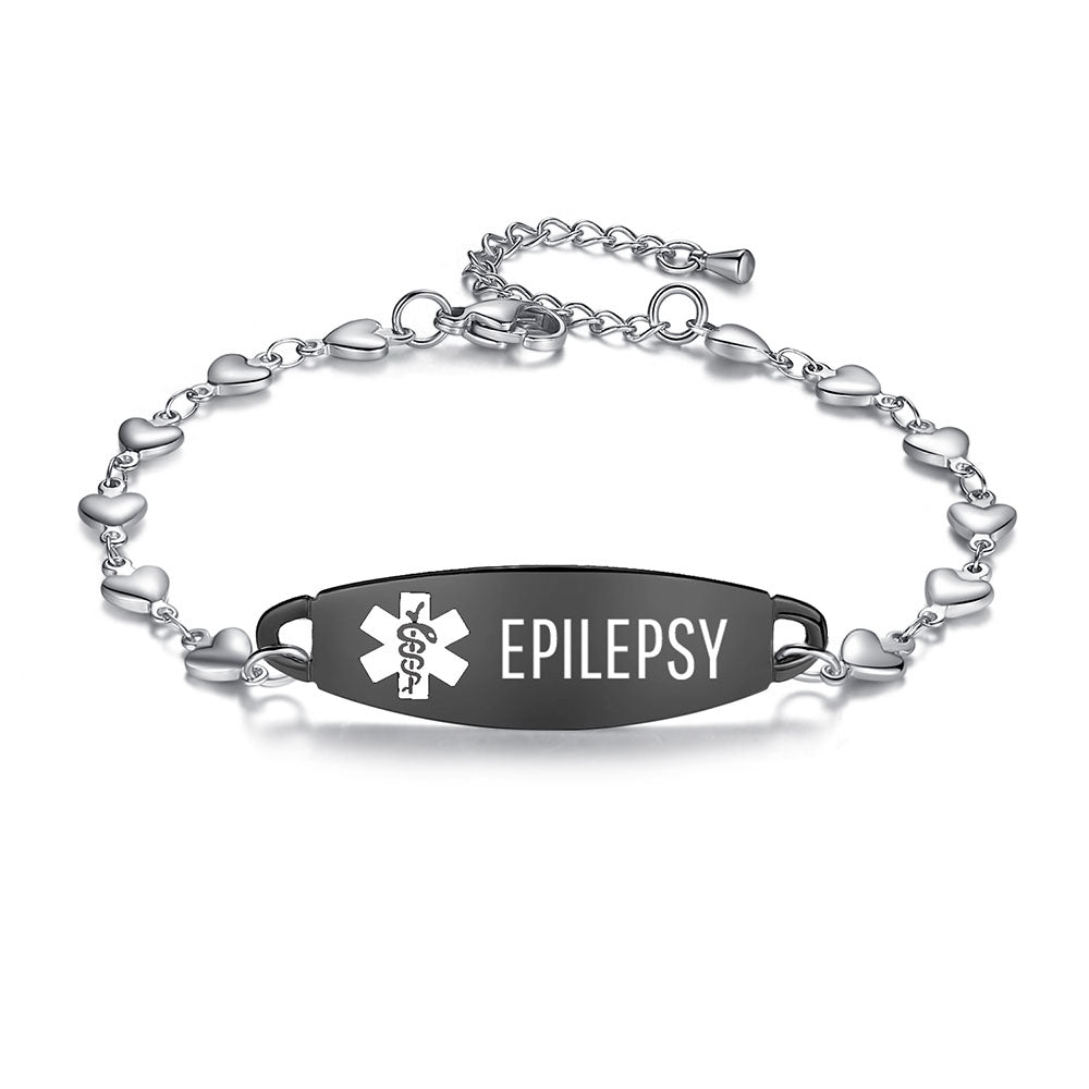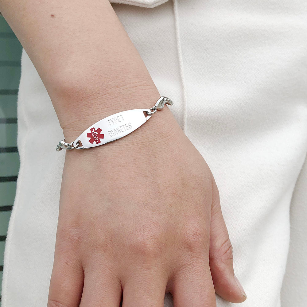 - Lovely heart medical alert bracelets for women,The heart link can fit many women's wrists. It is comfortable to wear and adjustable in size. It is a medical bracelet and a charming fashion jewelry.