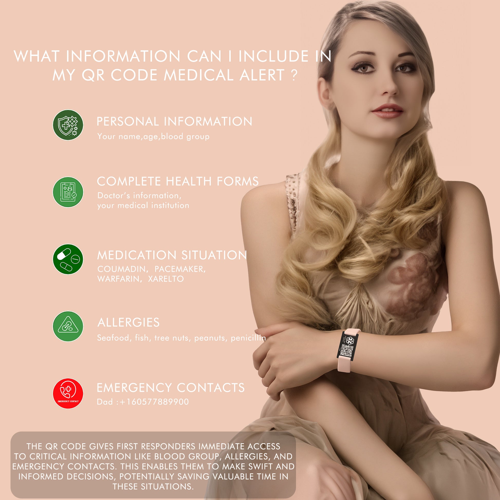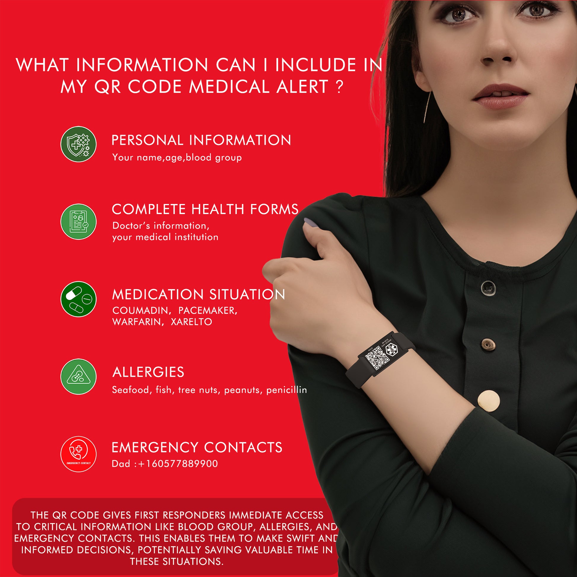 Ideal for individuals with allergies, chronic conditions, or special medication needs, this bracelet acts as your silent guardian—keeping your vital information accessible and your mind at ease.