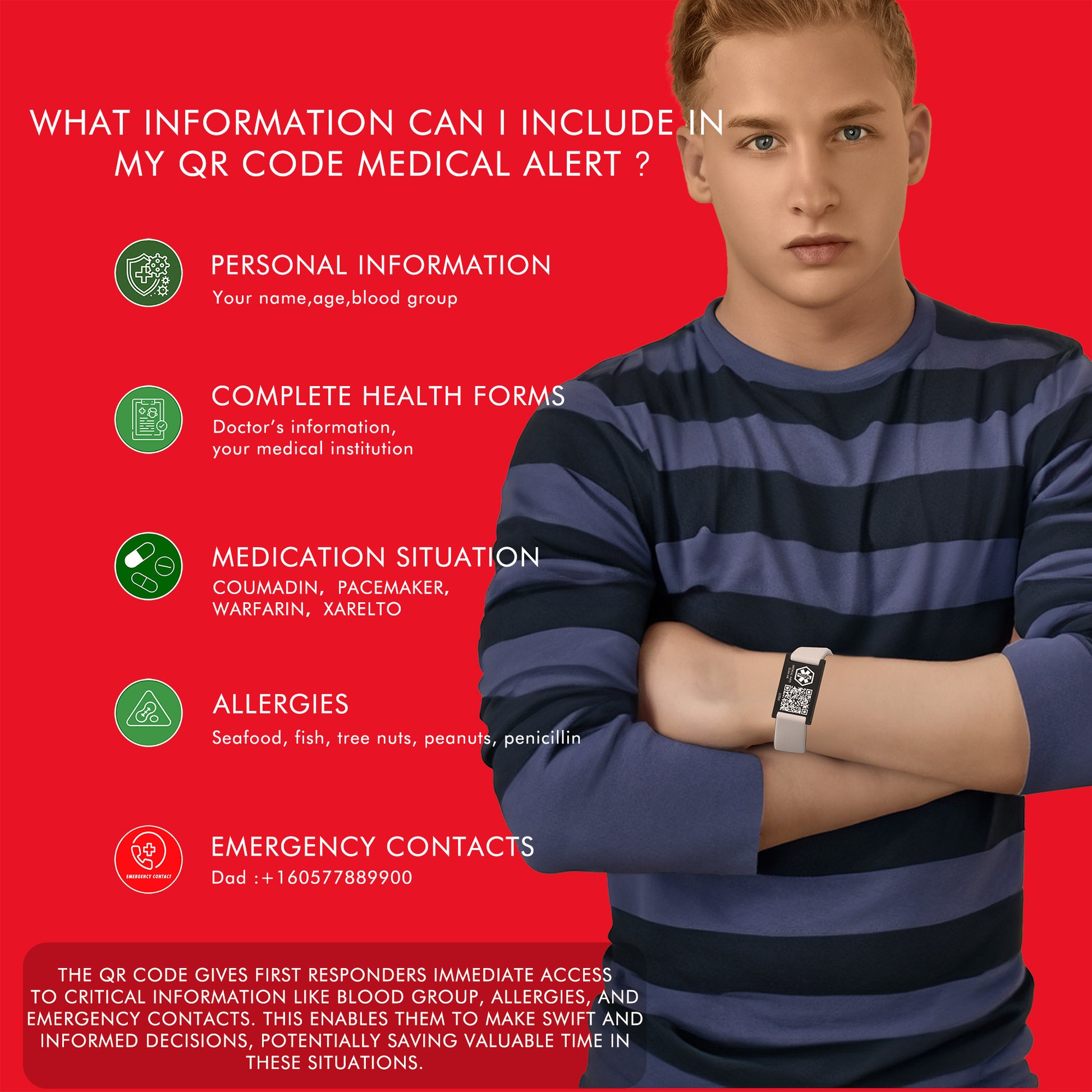 Stay protected and prepared at all times with our innovative Medical ID Bracelet, which seamlessly integrates modern technology with user-centered design to provide critical health information when it matters most.