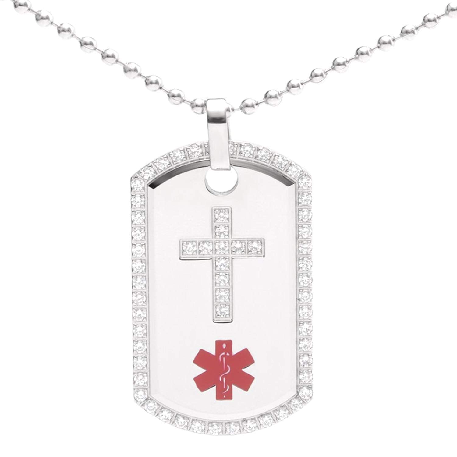 CNC Set stone cross Medical id DOG TAG Necklace with Free Engraving