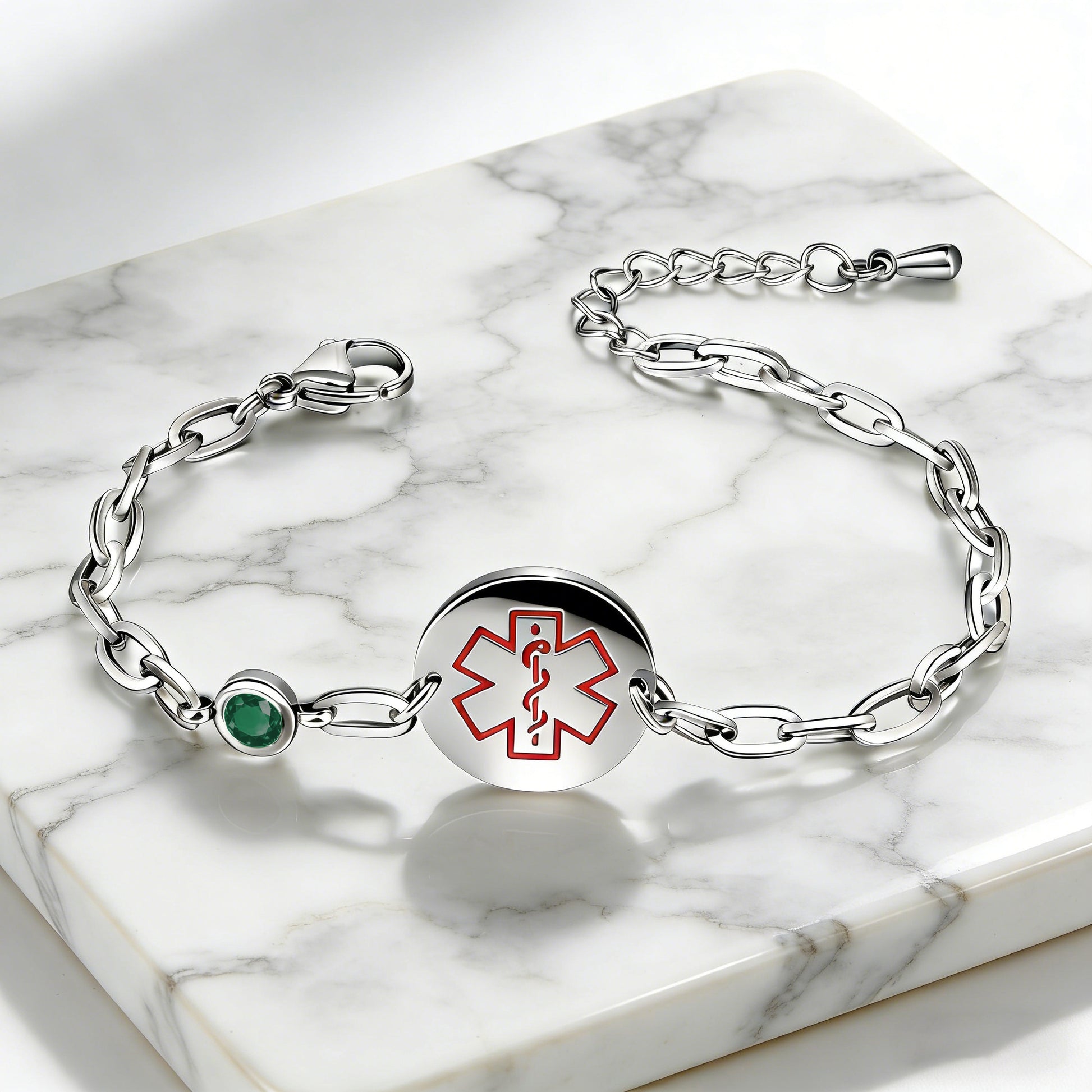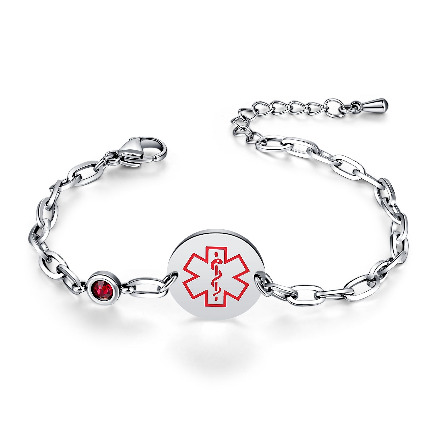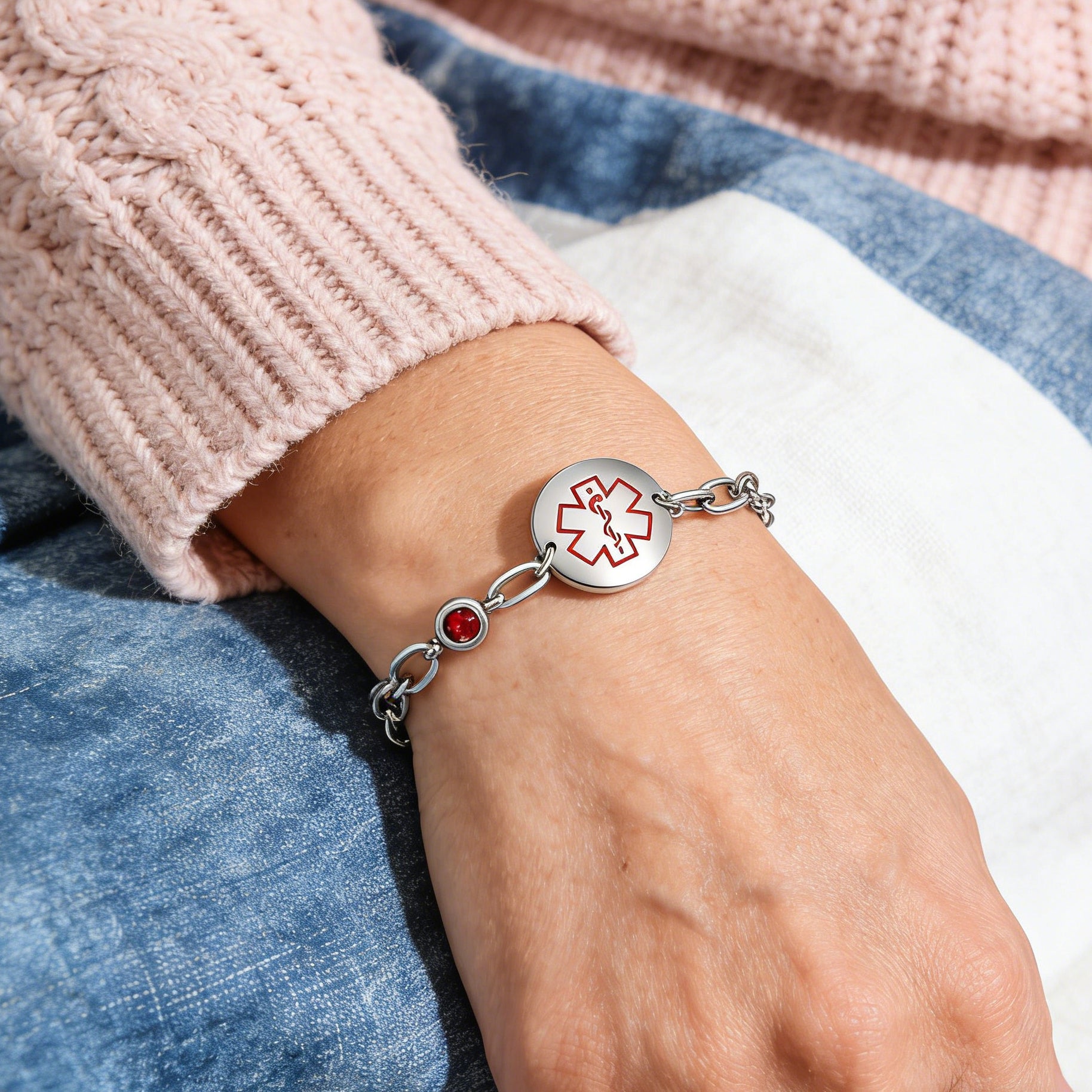 Birthstone qr code medical id bracelet for women,6.5-8.5 inch Adjustable,digital health status page