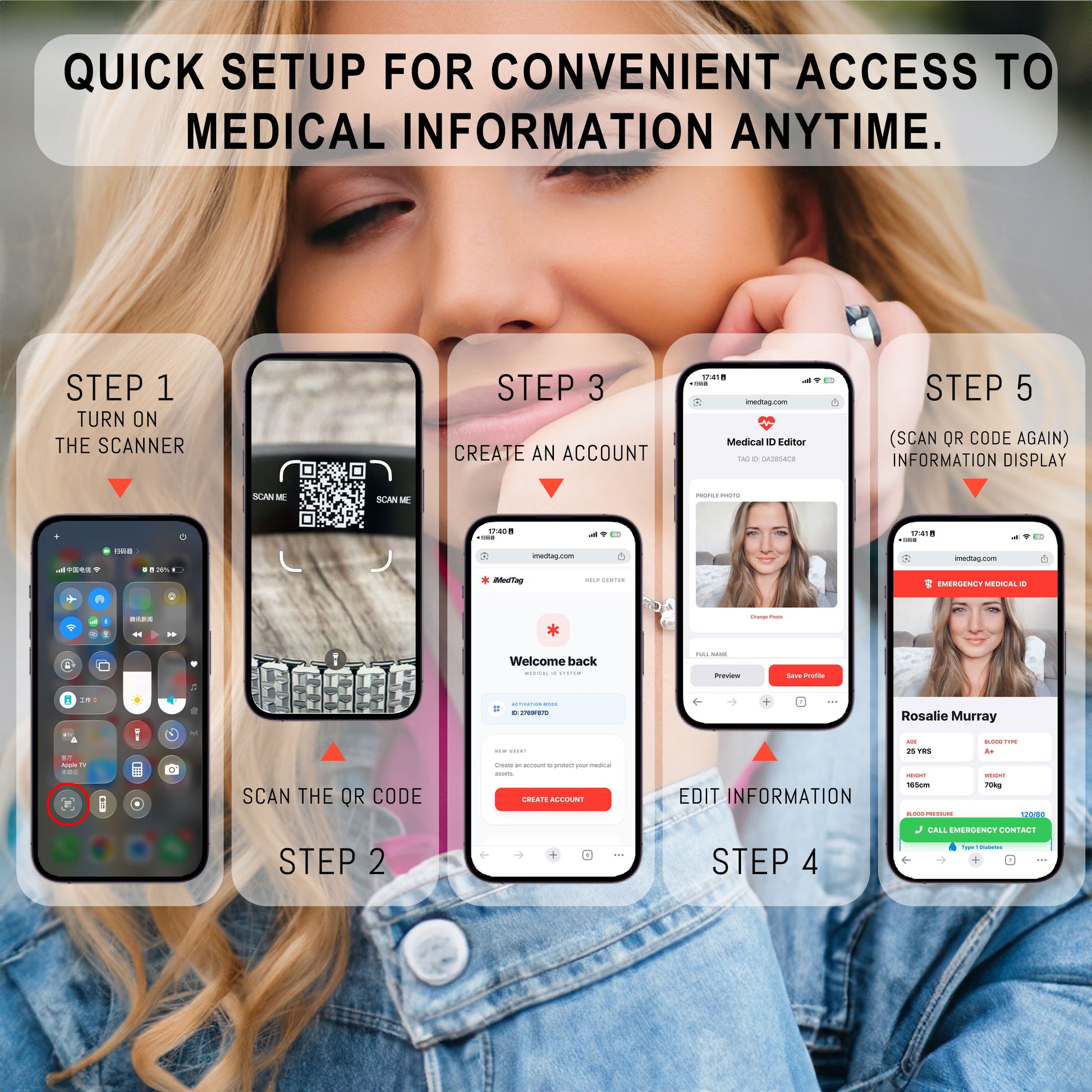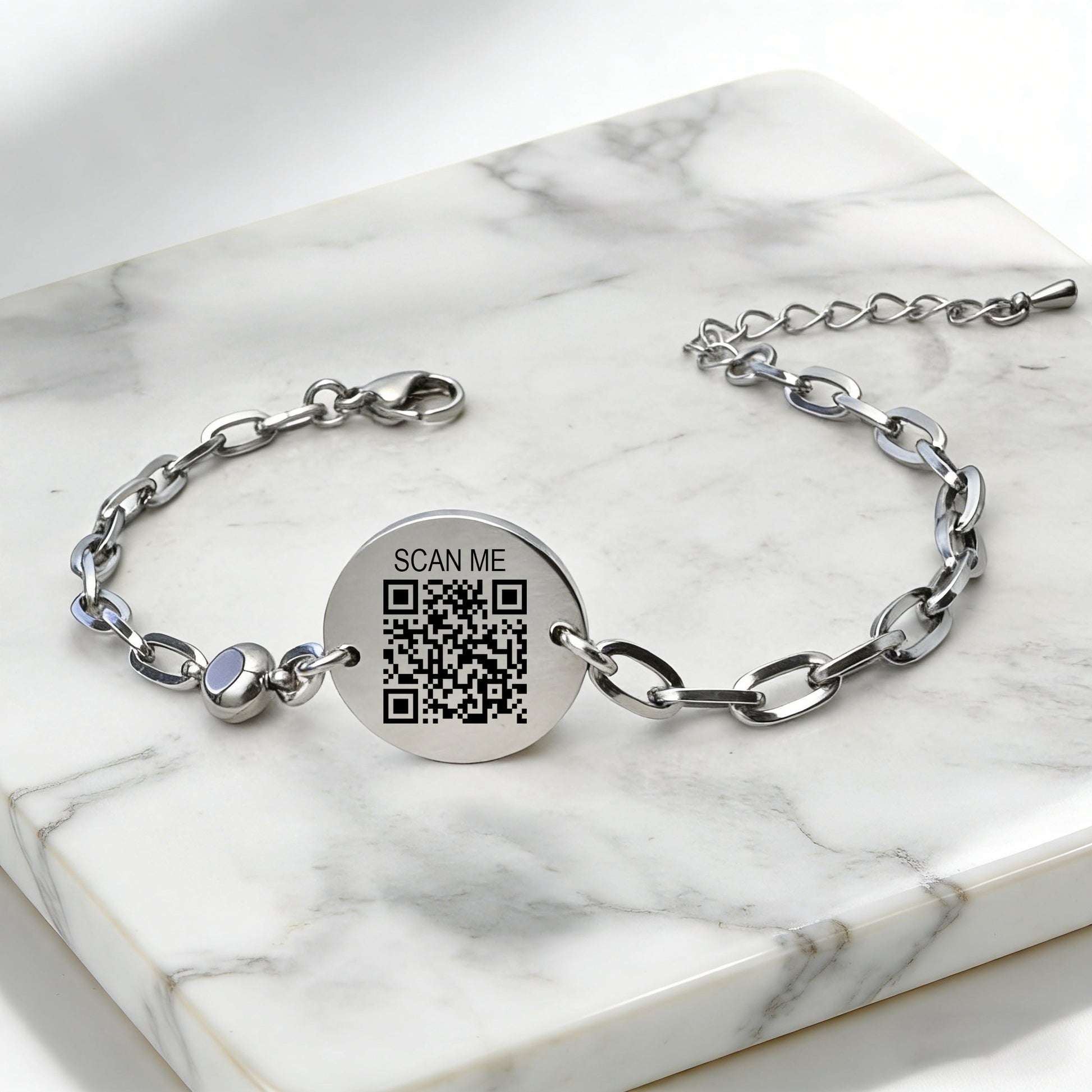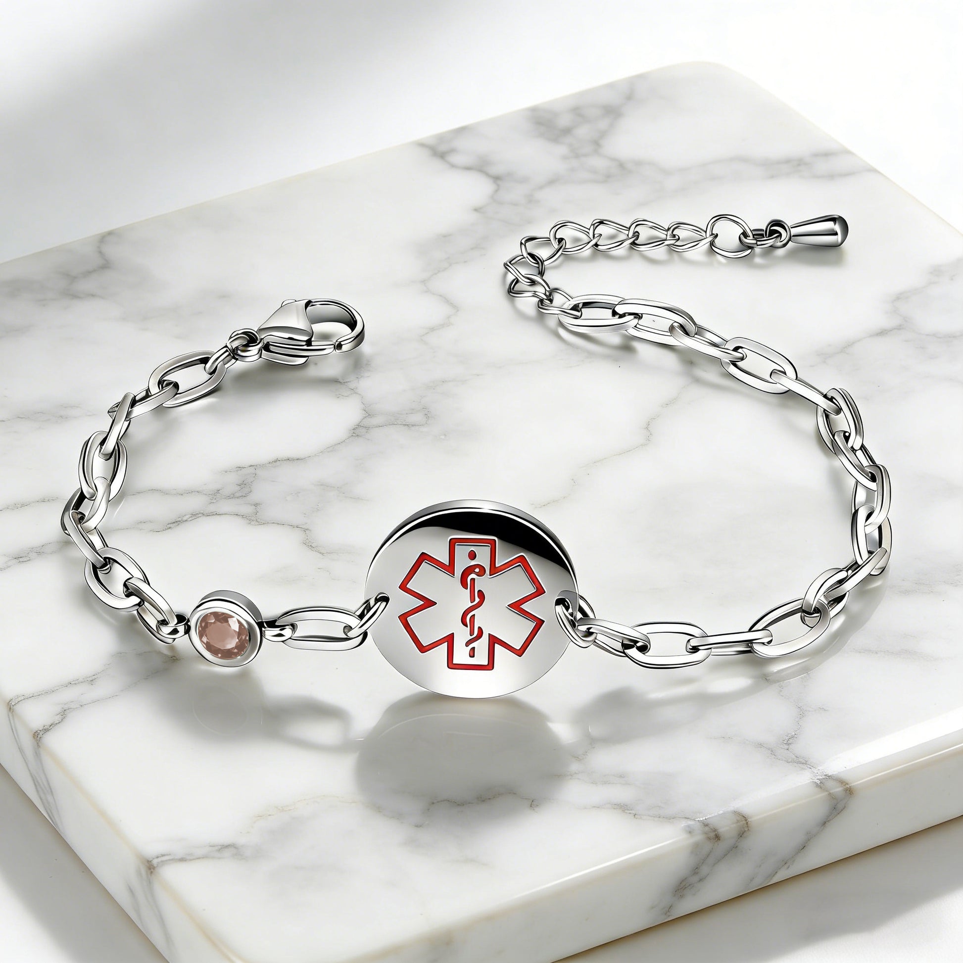 Birthstone qr code medical id bracelet for women,6.5-8.5 inch Adjustable,digital health status page