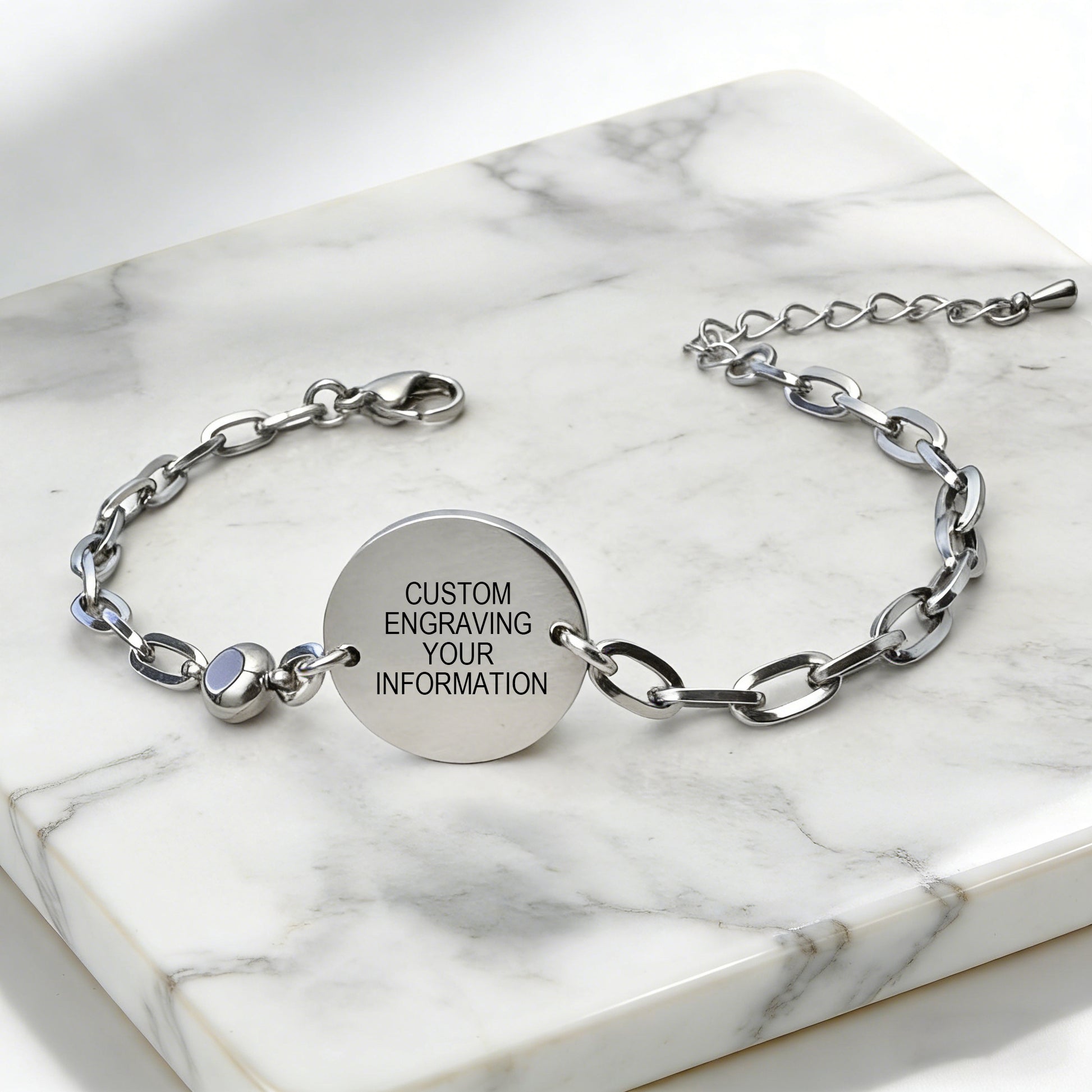 LinnaLove Fashion Shiny medical alert bracelet with Free Engraving Stainless steel Medical id bracelet for Women