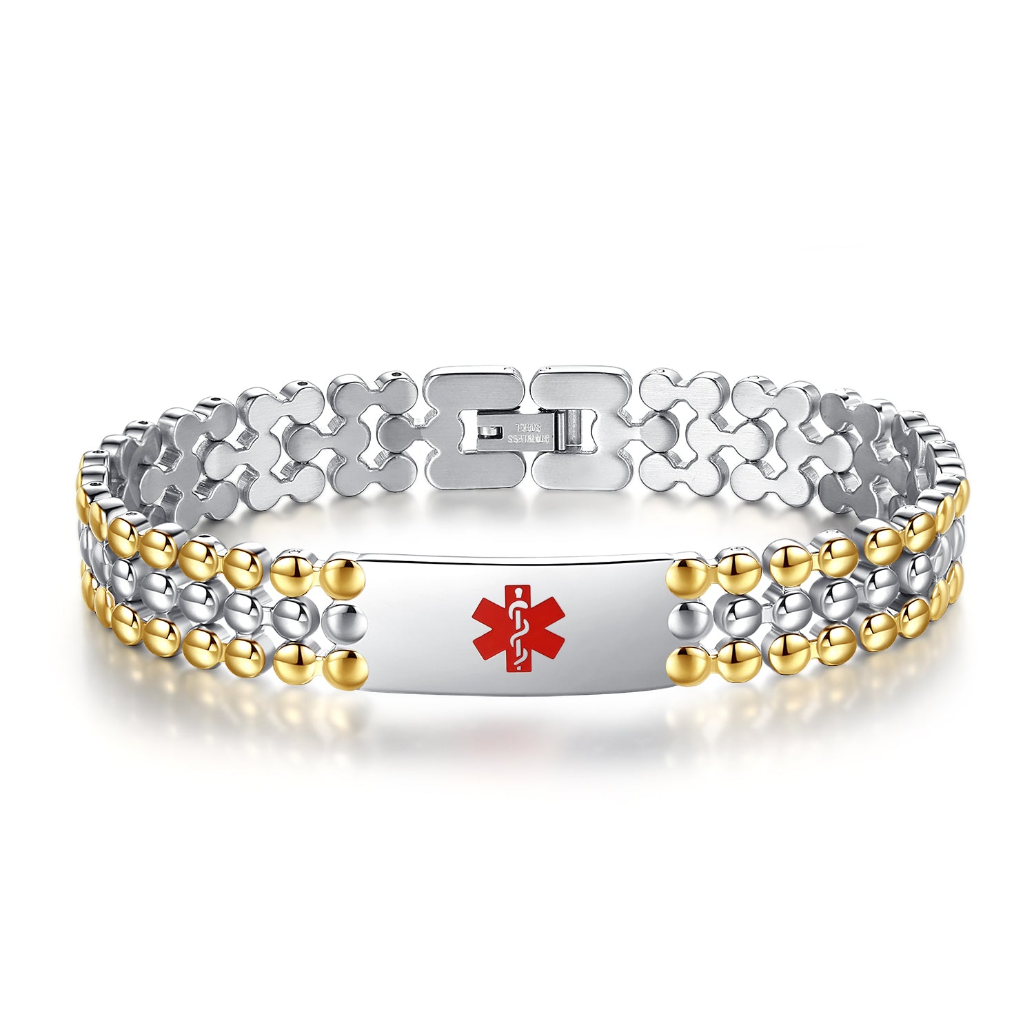 • 👍This uniquely designed medical bracelets are made of stainless steel with shiny polished, the dumbbell style link is very beautiful, Multiple color versions to meet different customer preferencesnot only medical id bracelets, but also a beautiful piece of jewelry