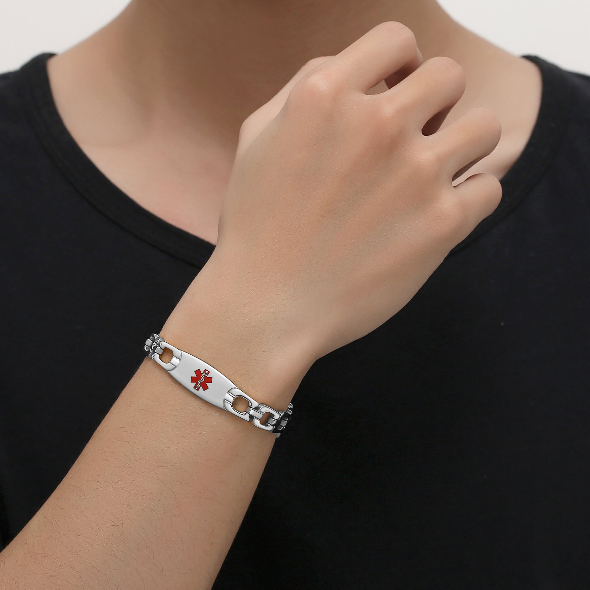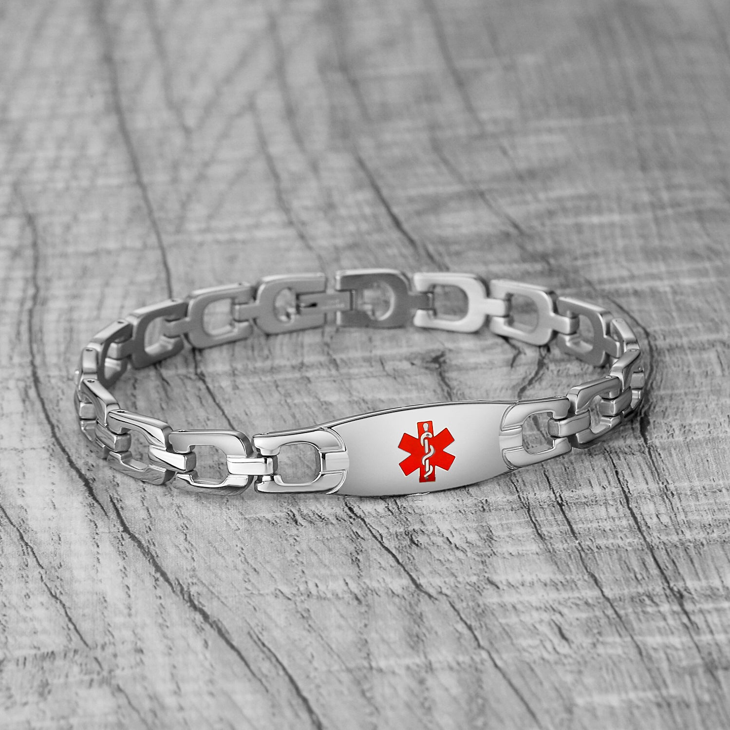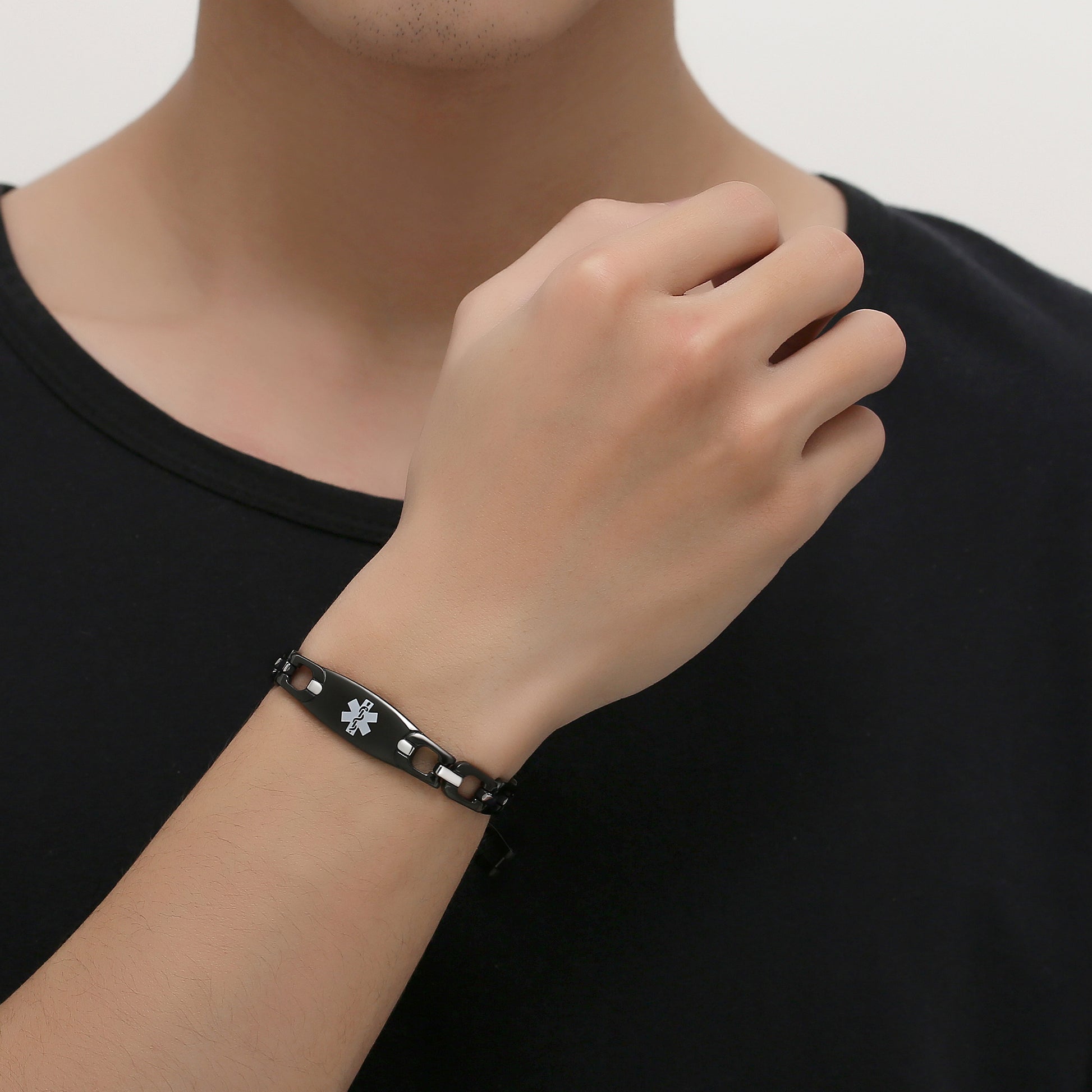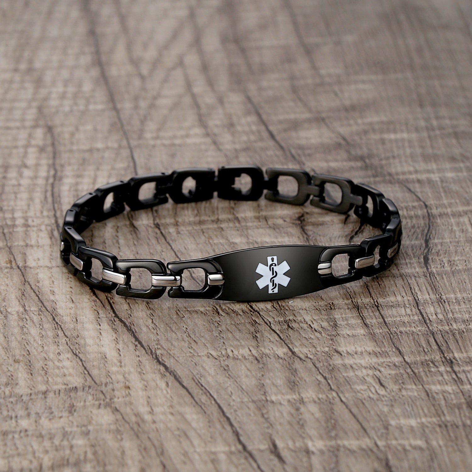 Titanium Medical id Bracelets for Men Free Engraving Emergency Medical alert Bracelets
