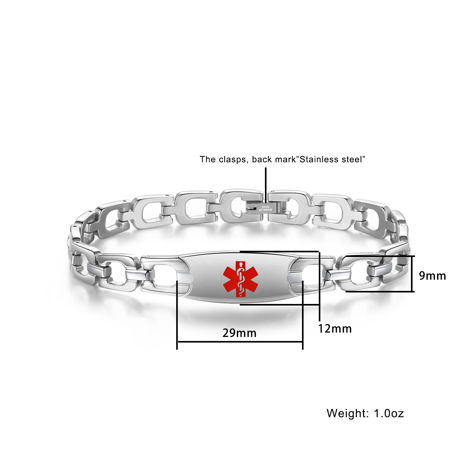 Fashion Lady Stainless steel Medical Alert id Bracelets with Free Engraving