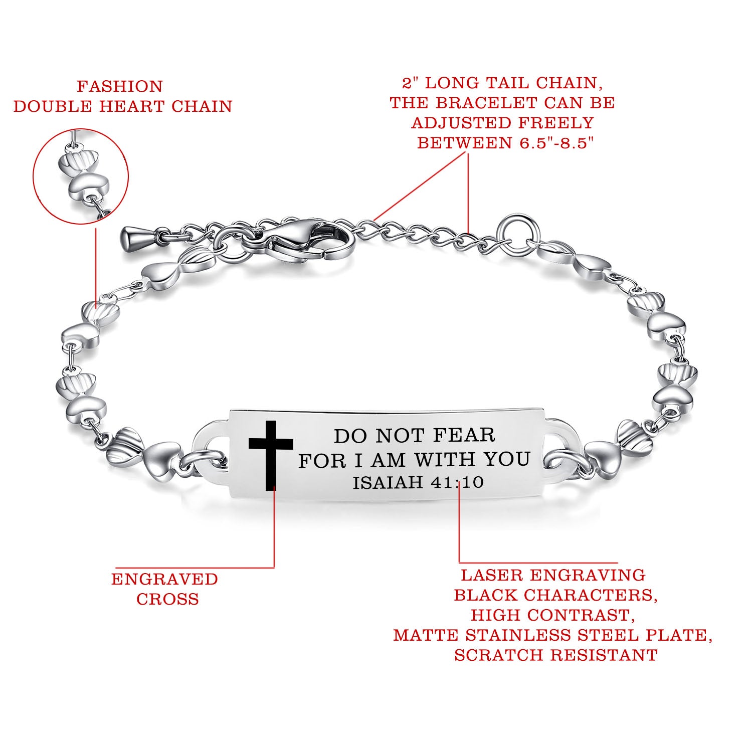 linnalove Bible Verse Bracelets,Christmas Gift -Adjustable Stainless Steel heart chain Faith Christian Mantra Quotes Engraved Bracelet for Women