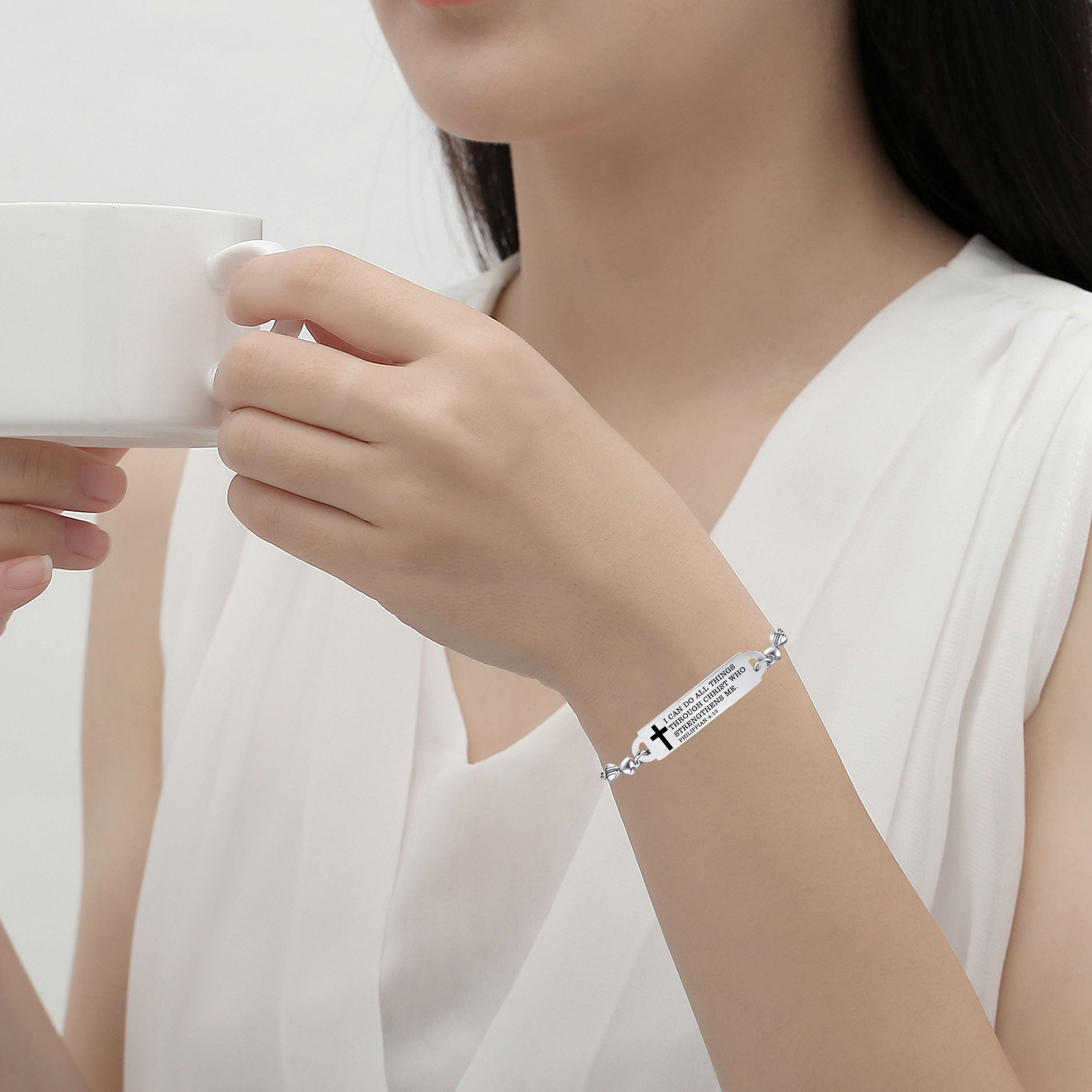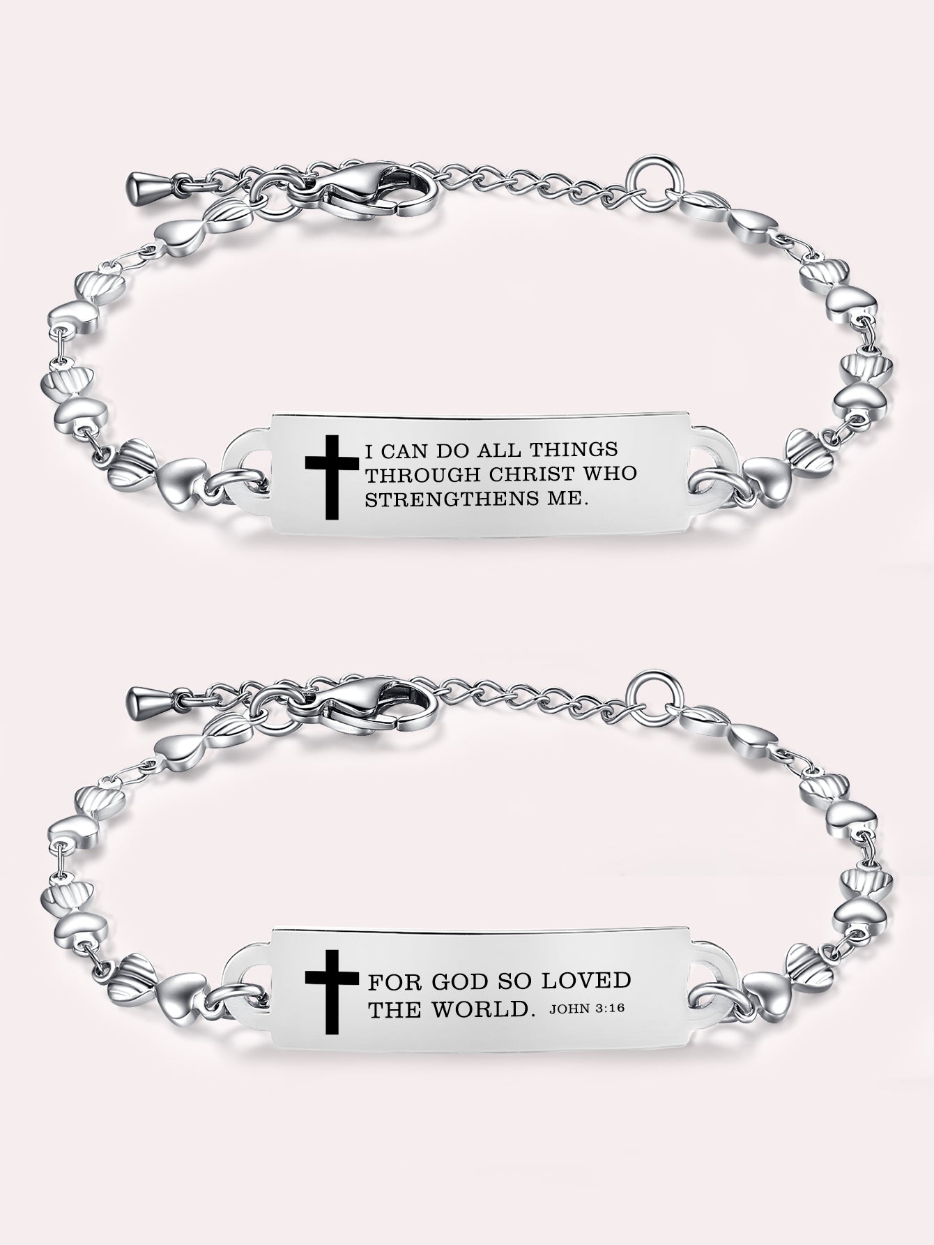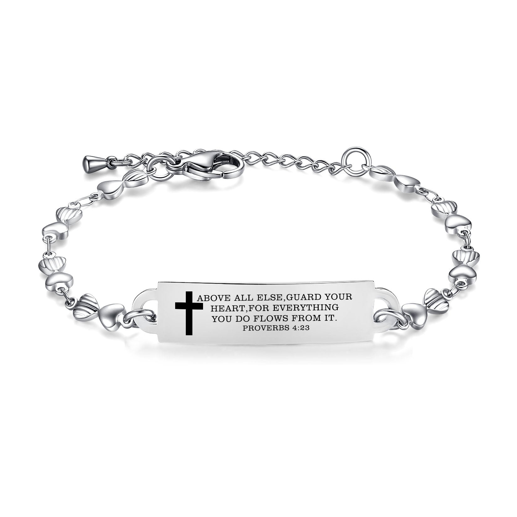 Elevate your faith with our stunning stainless steel Bible verse bracelet, a symbol of hope and peace.