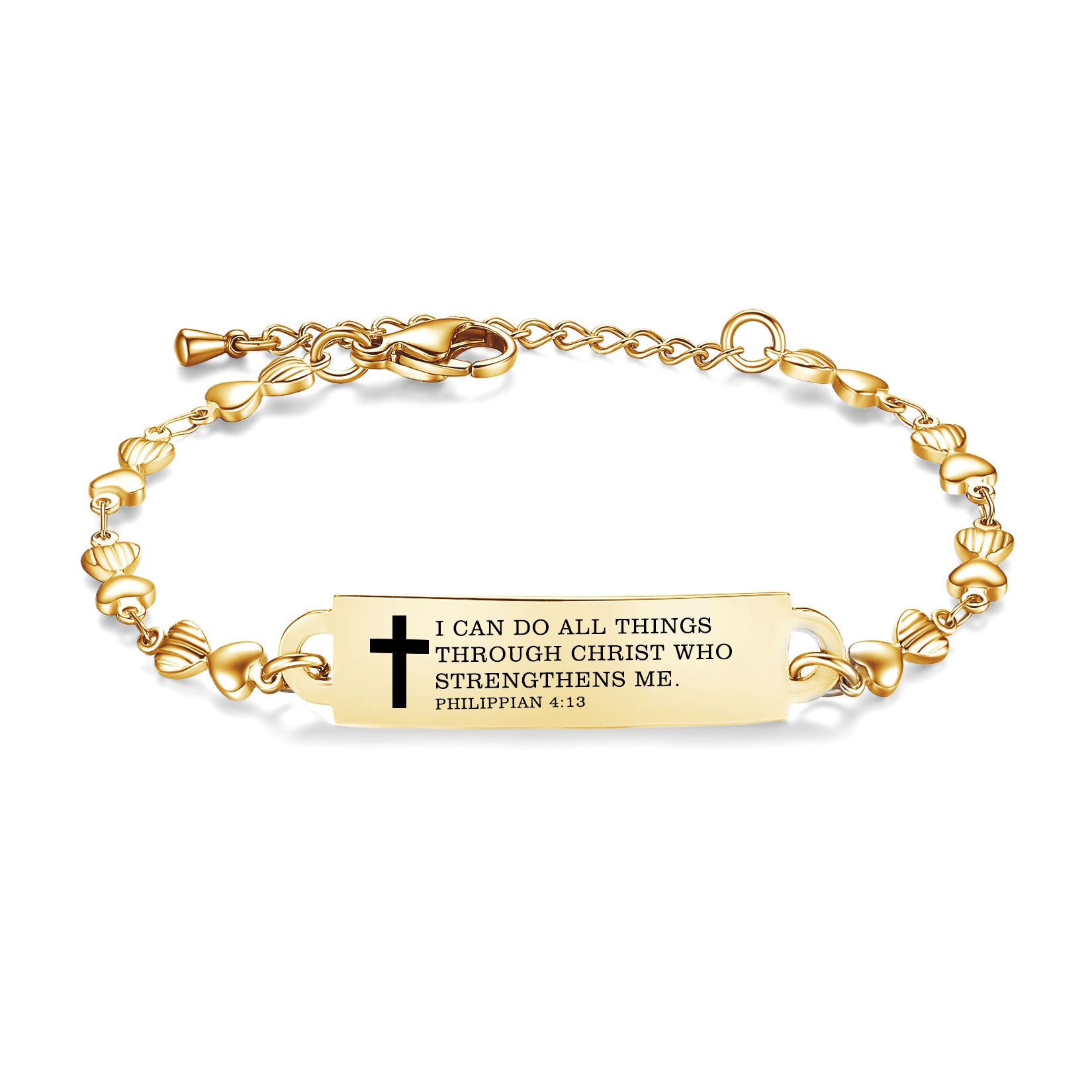 Engraved with uplifting scripture, it combines elegant design with powerful words to create a meaningful accessory perfect for everyday wear.