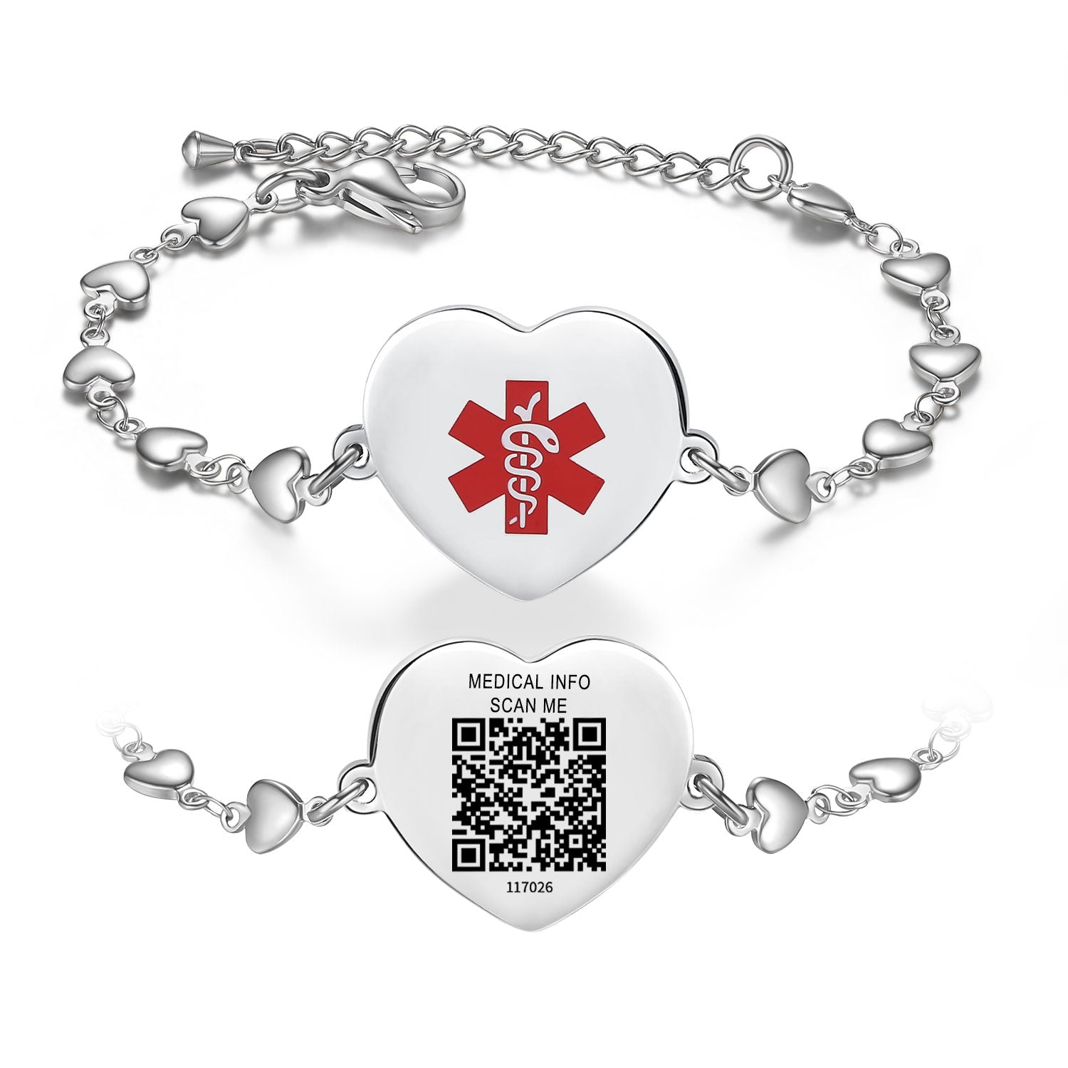 • Medical Emergency Information: Our bracelet incorporates cutting-edge QR code technology to securely store comprehensive medical information, significantly exceeding the capabilities of traditional engraved tags. Simply scan the QR code to access a detailed emergency medical profile for swift and accurate information retrieval.