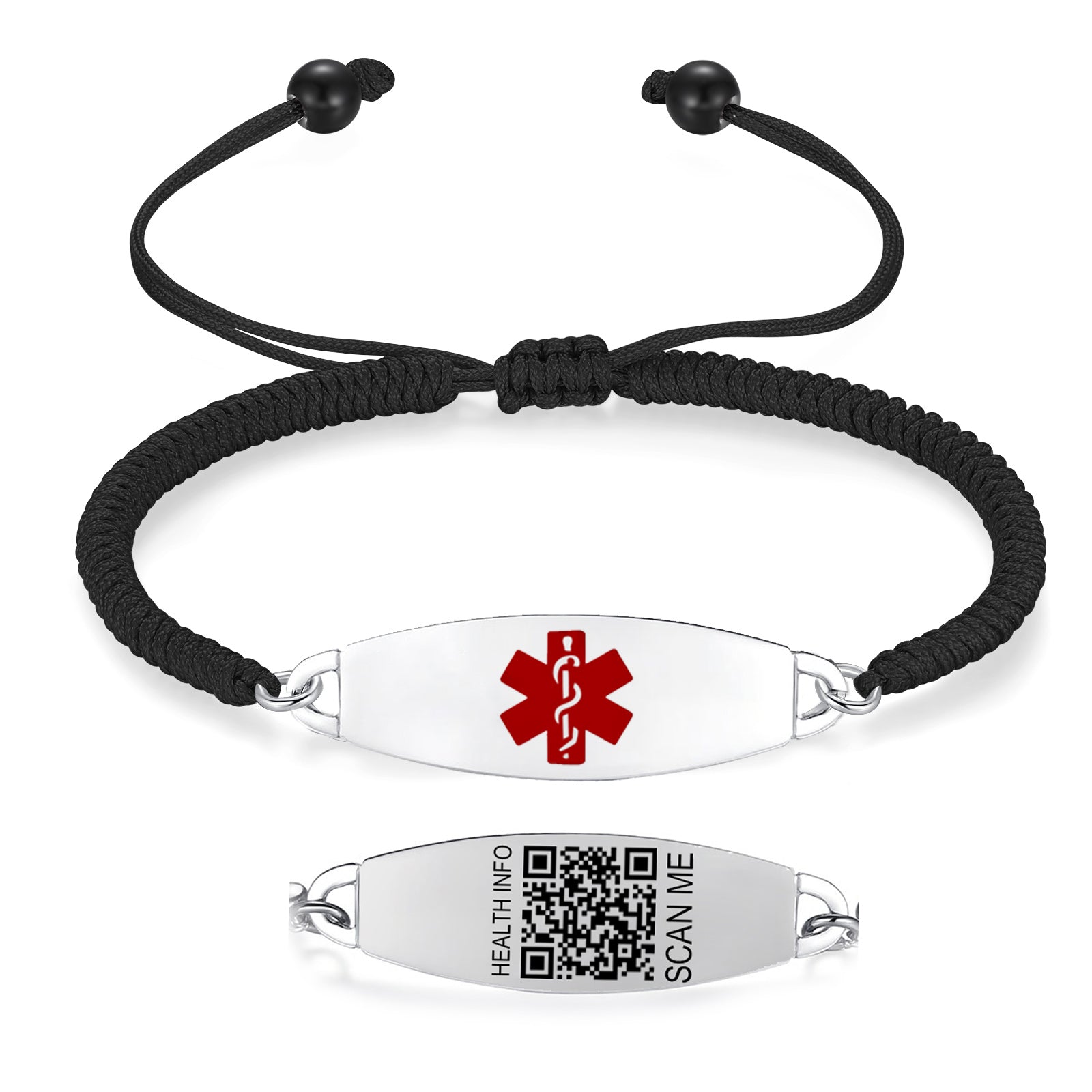 QR Code Medical Alert Bracelet for women and girls Hand-wound rope Medical id bracelet-digital health status page