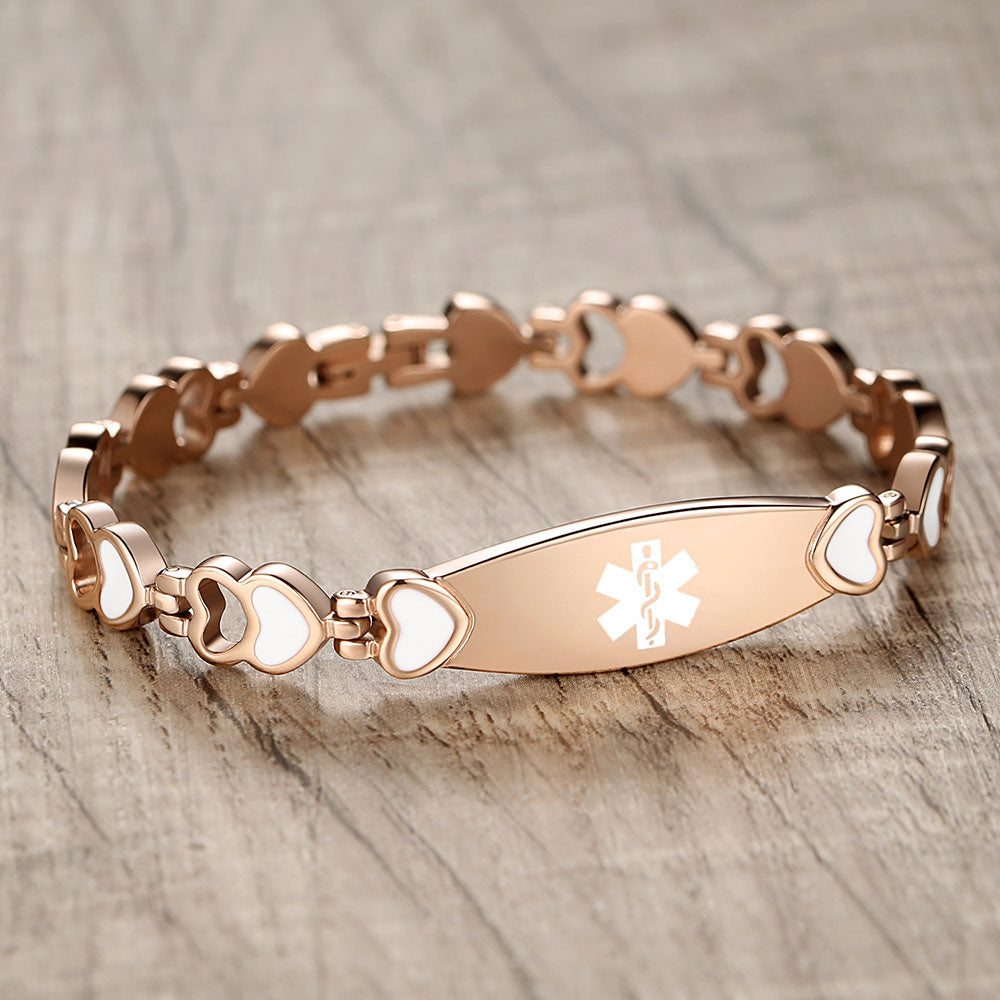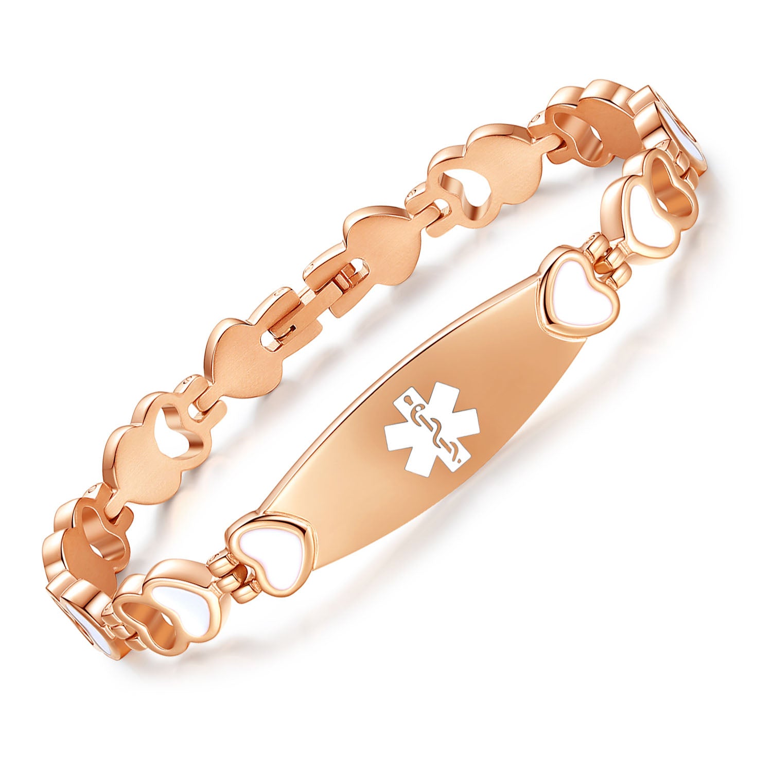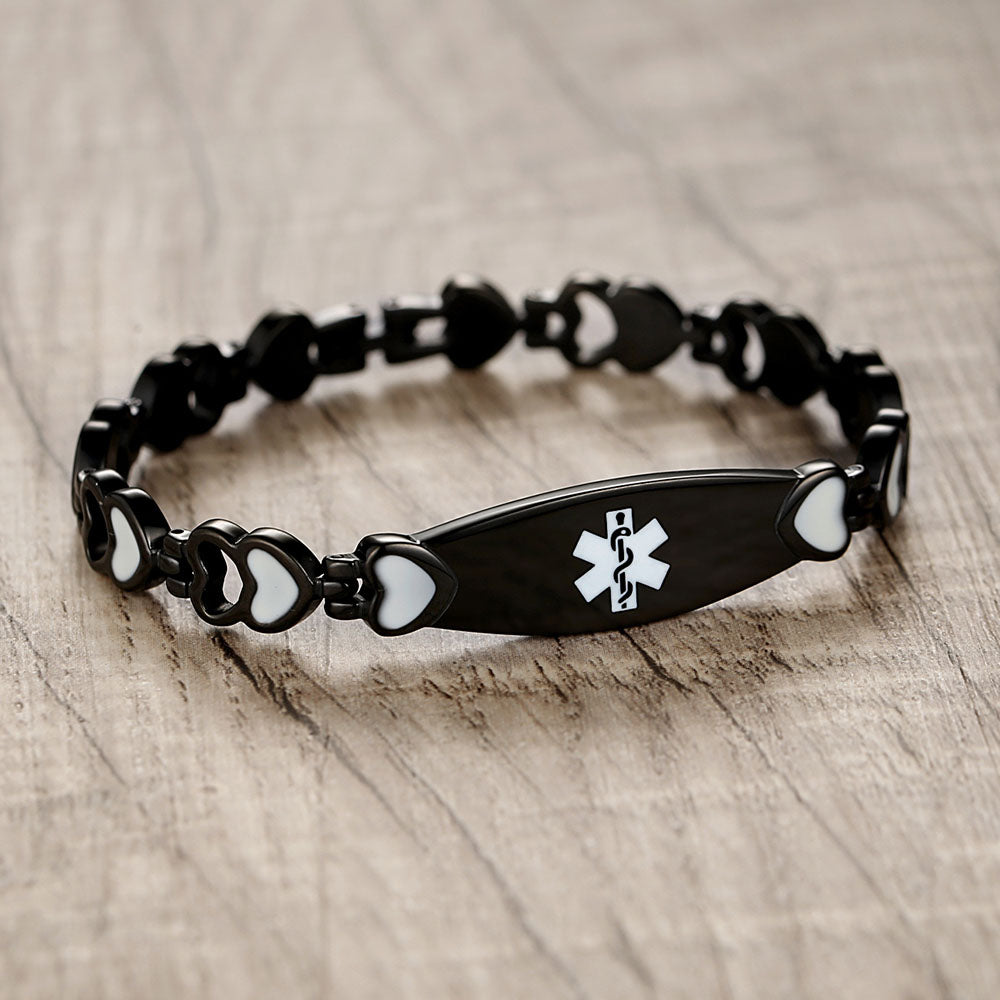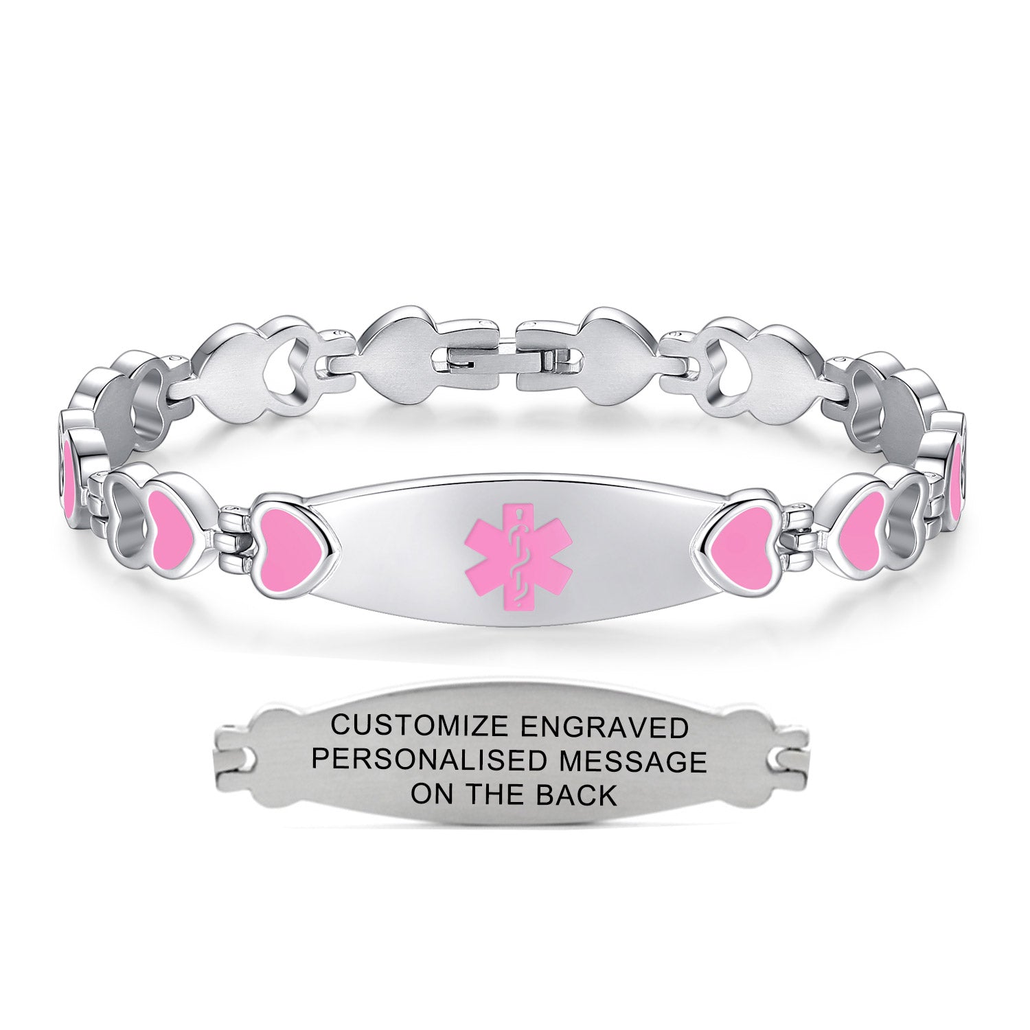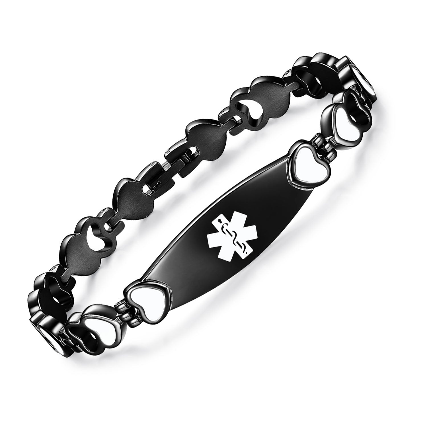 - ♡ CUSTOMIZABLE: This Fashion heart design women medical id bracelets Free custom engraving,Laser engraved on the back of the bracelet, black characters for clear reading