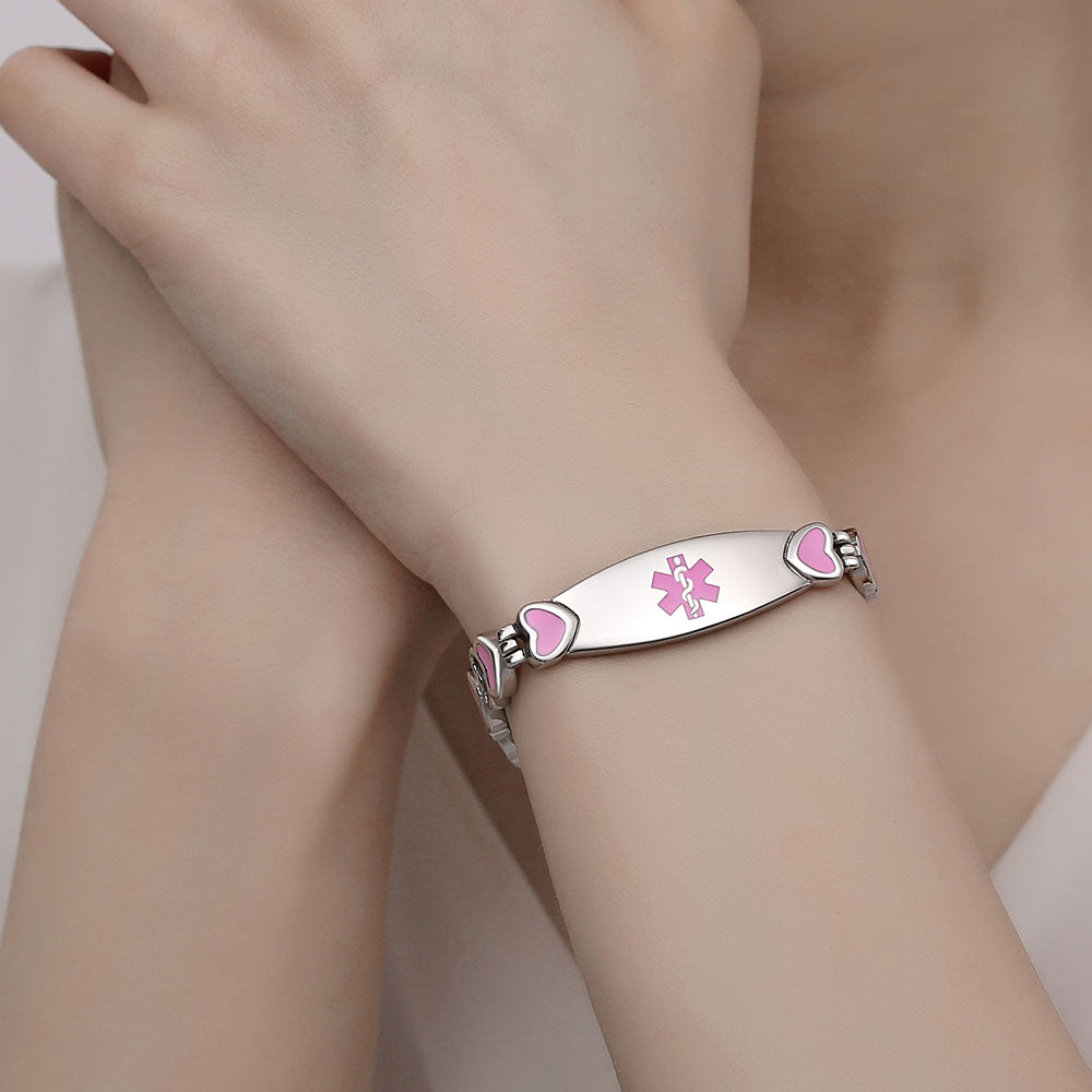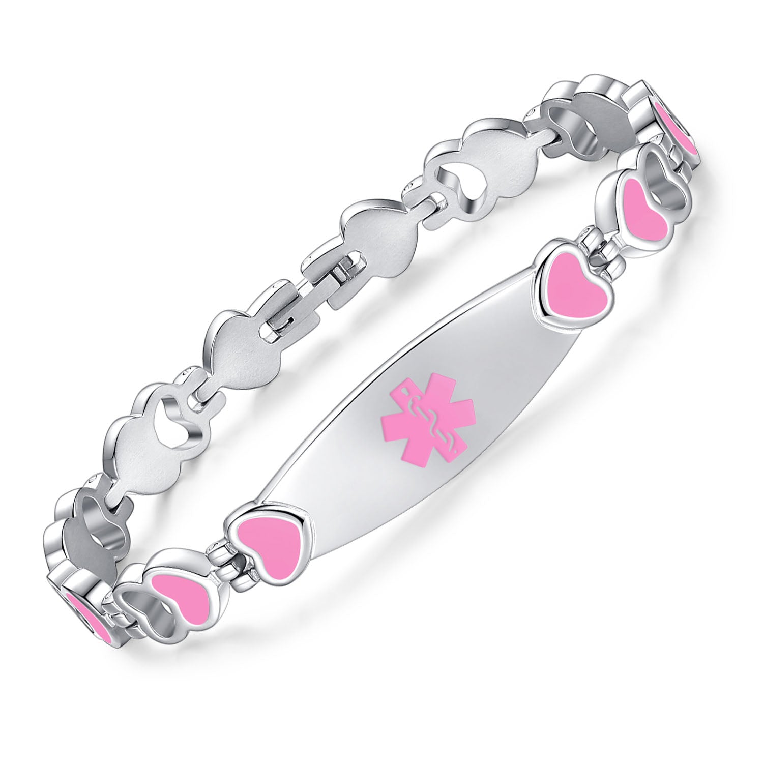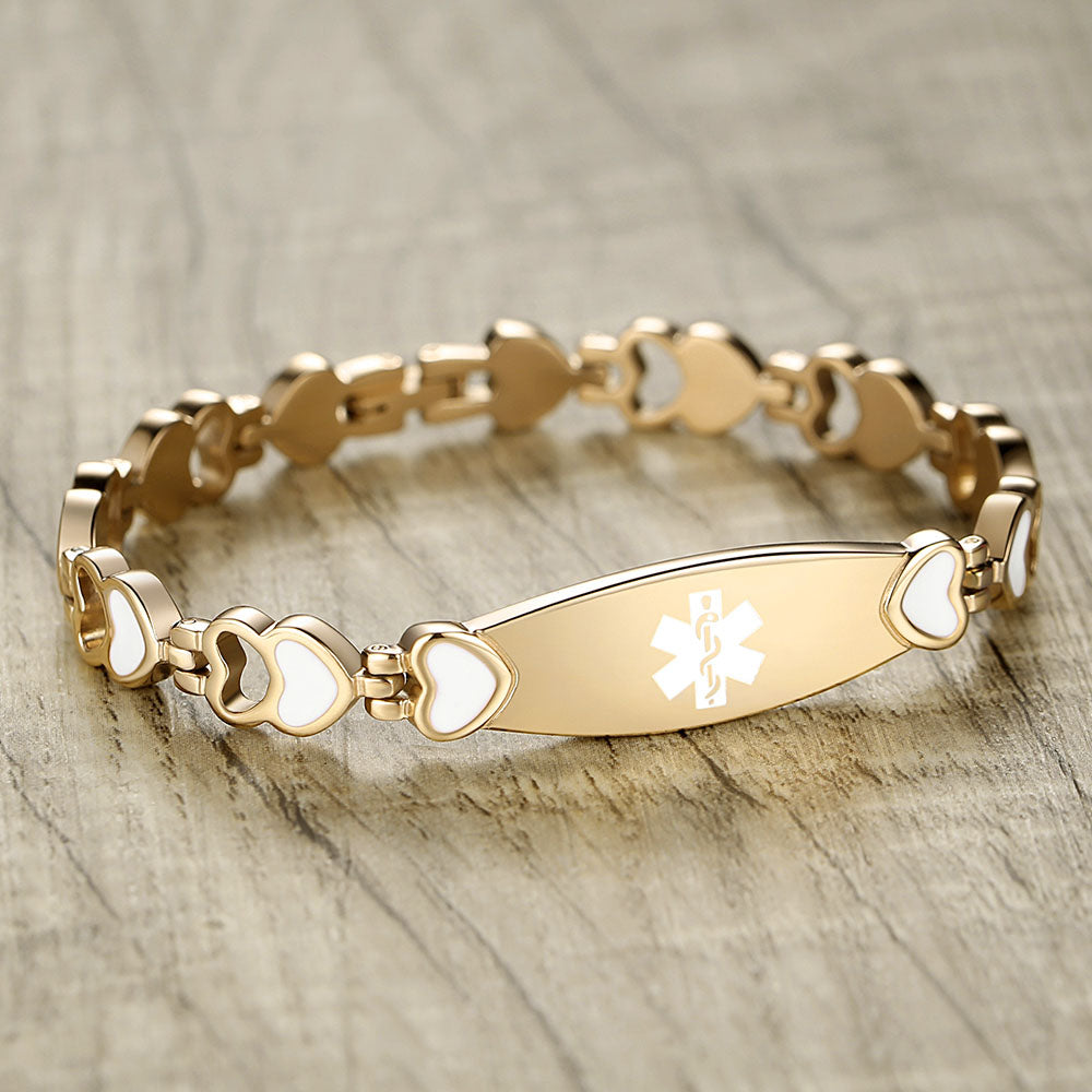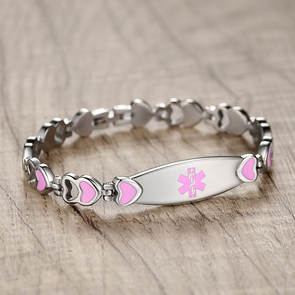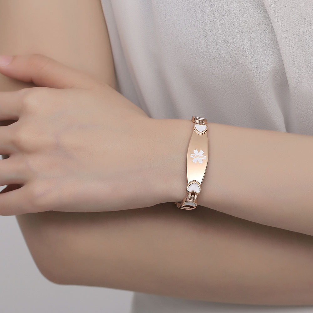 - ♡ CUSTOMIZABLE: This Fashion heart design women medical id bracelets Free custom engraving,Laser engraved on the back of the bracelet, black characters for clear reading