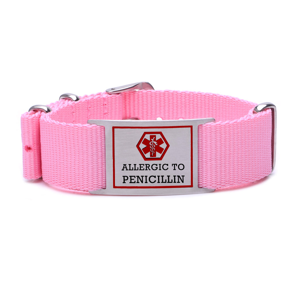 - Sporty style Medical alert Bracelets,18mm Width Sport Canvas band,waterproof, sweat-absorbent, adjustable suitable for wrist size = 6-8.5 inch,comfortable to wear